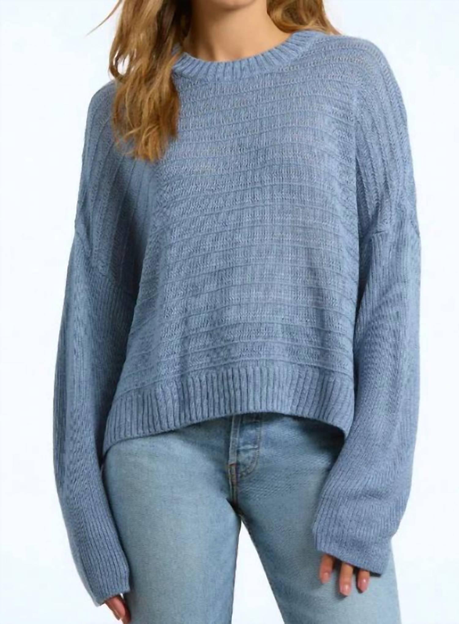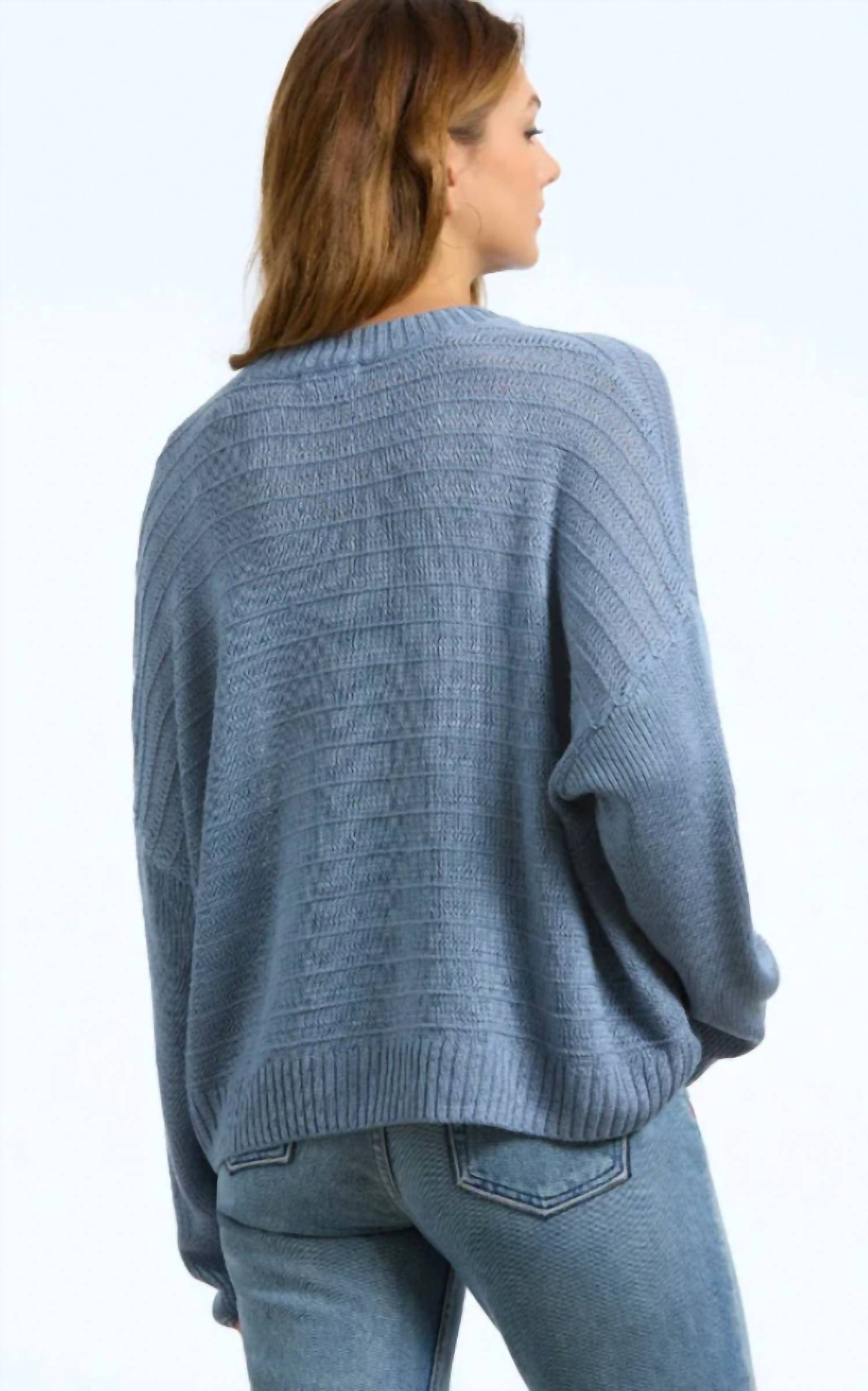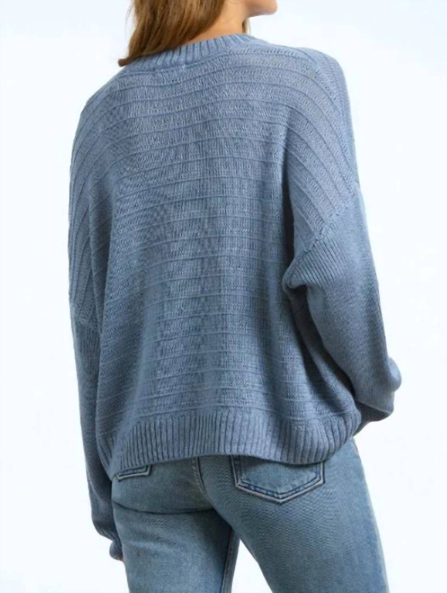Drop shoulders and an eye-catching horizontal weave add interest and a relaxed feel to the classic crewneck.