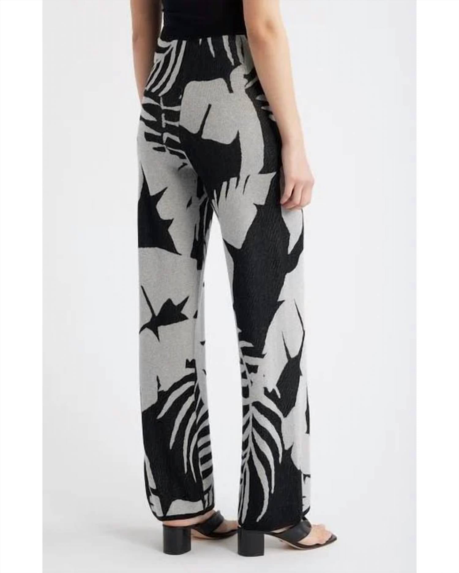 Expertly crafted with a playful tropical palm print, these flared knit pants bring effortless style to any outfit. Made from soft, stretchy fabric, they offer the perfect blend of comfort and sophistication. Add a touch of vacation-ready charm to your wardrobe with the Palms Pant.