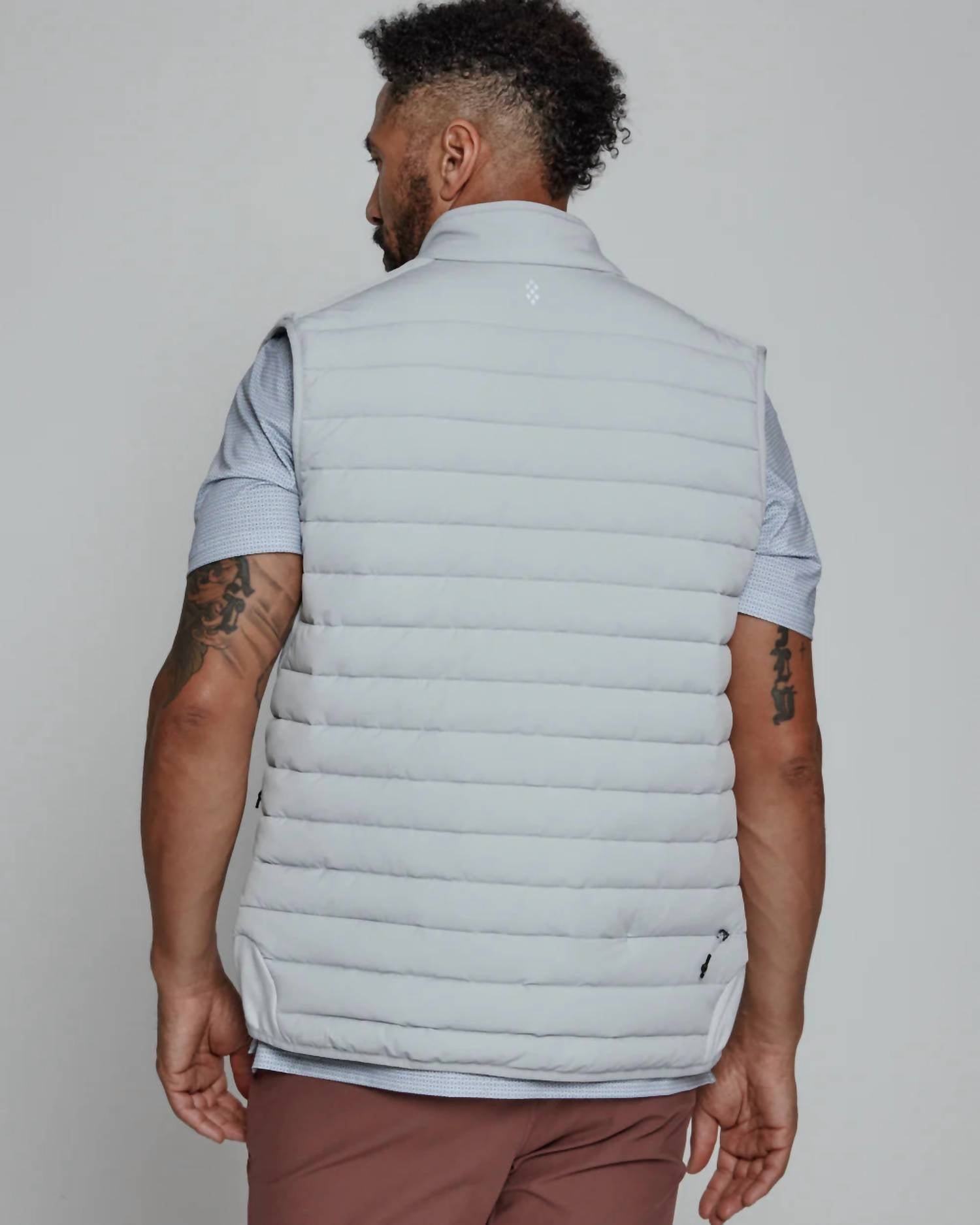 Meet the Atlas Vest by 7Diamonds, a must-have for any well-dressed man's wardrobe. This chalk-colored, textured vest is sleeveless and features a practical zip closure for easy layering. Made from a body composition of 85% Nylon and 15% Spandex with a 100% Nylon lining, it offers both lightweight comfort and style. Care for this nylon blend by machine washing with similar colors in cold water; promptly tumble dry on low and avoid steam ironing or fabric softener.