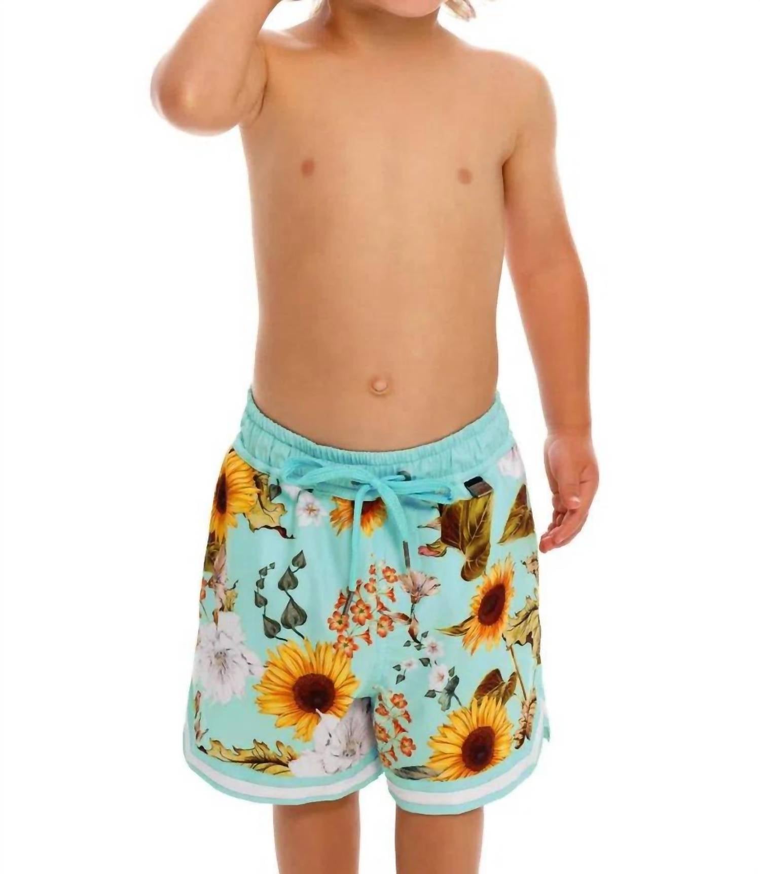 Perfect for a vibrant beach day. Crafted in a new silhouette. Boho chic swim trunks showcase a lively floral pattern in multicolor. With a composition of 90% polyester and 10% elastane. Made in Colombia and designed for boys. Care is simple with hand wash instructions and hang dry recommended.
