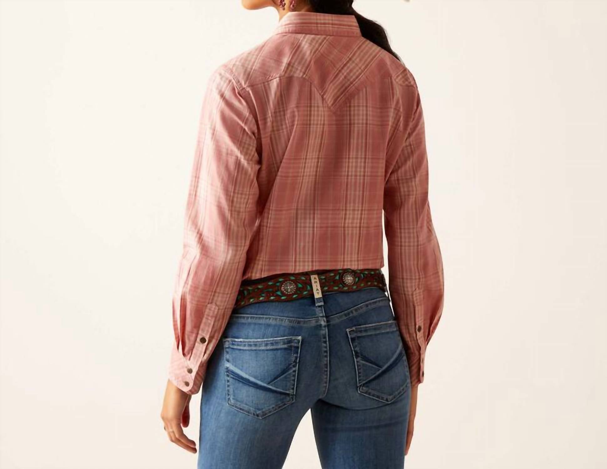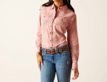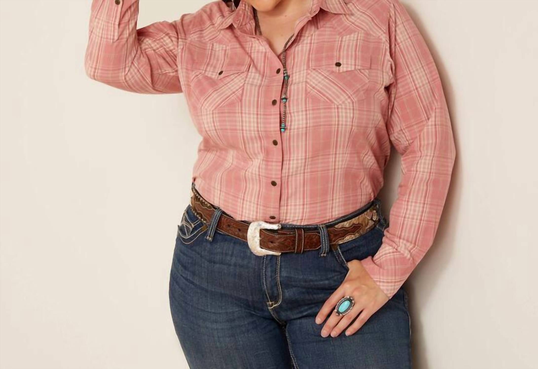 Meet the Nazca Plaid Long Sleeve Shirt by ARIAT, a versatile western-inspired piece in vibrant pink. Crafted from 100% cotton, this shirt features a traditional collar neckline, western yoke detail, and chest pockets for added practicality. Its snap front closure and yarn-dyed plaid pattern make it a stylish choice, perfect for layering or wearing solo. Care for it is simple: It's machine washable, keeping maintenance easy.