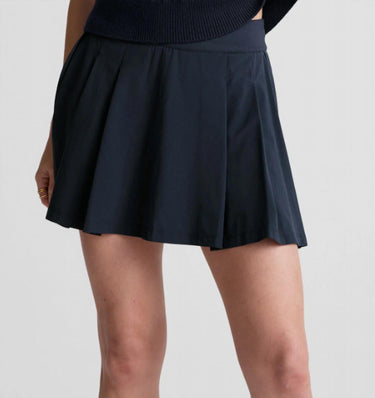 Discover the Score Pleated Mini Skirt by BEYOND YOGA in Nocturnal Navy, a perfect blend of style and functionality. Featuring a pull-on closure, this women's solid, minimalist skirt includes an exposed performance liner waistband with stitch-down front pleats for a flattering fit. Designed with side vents and internal performance shorts with pockets, it's ideal for spring outings, anniversaries, and Valentine's Day. Care for this unique piece with a hand wash and line dry to maintain its timeless appeal.