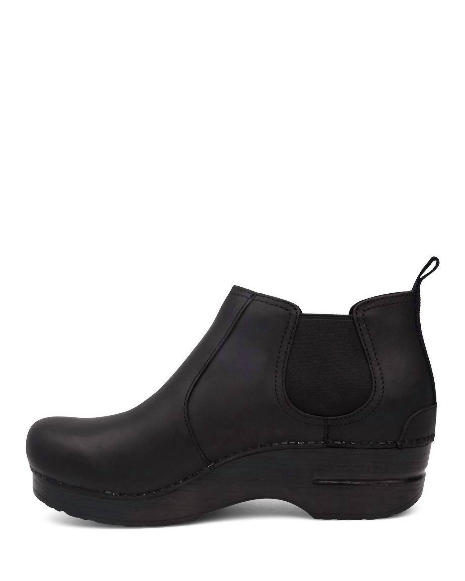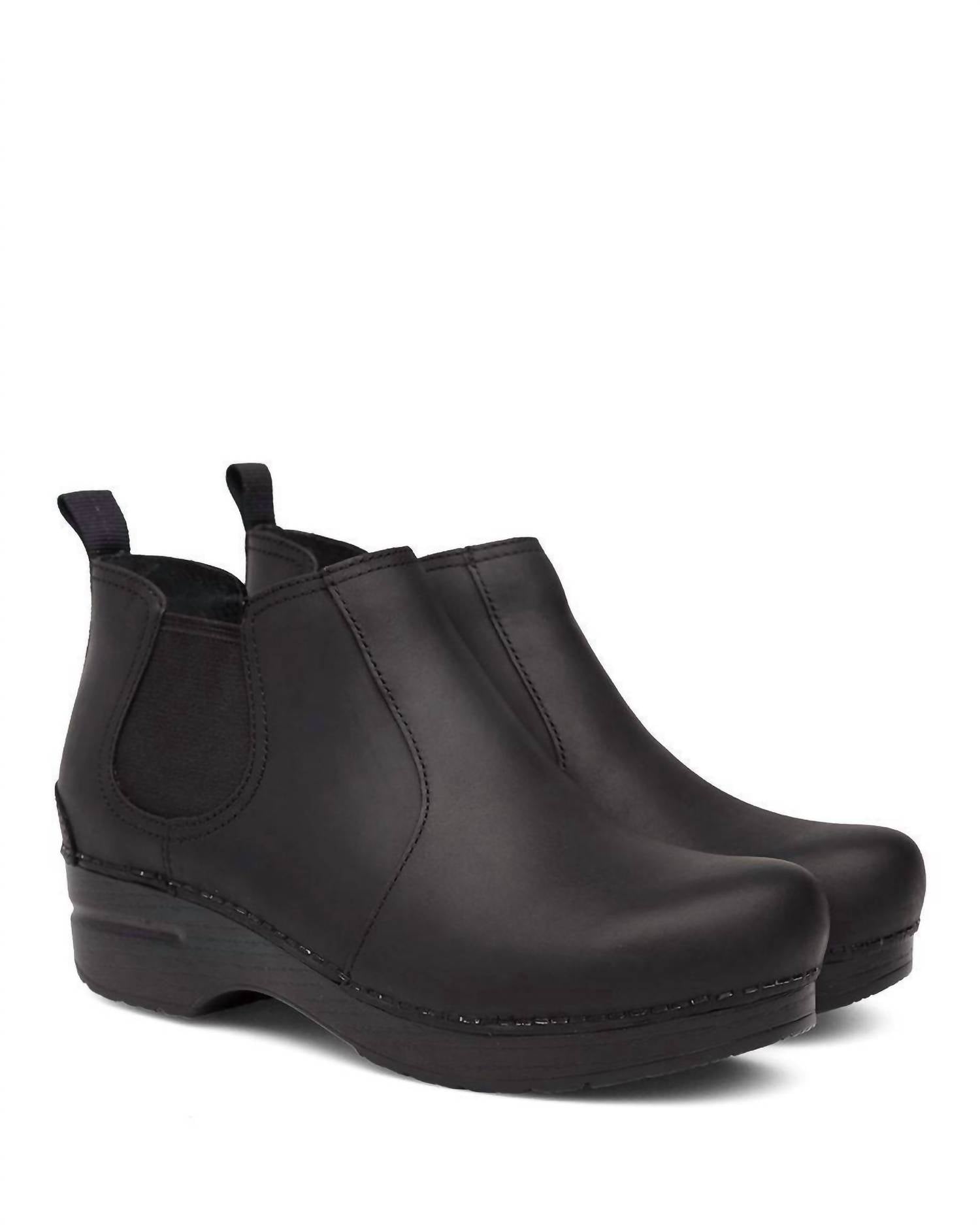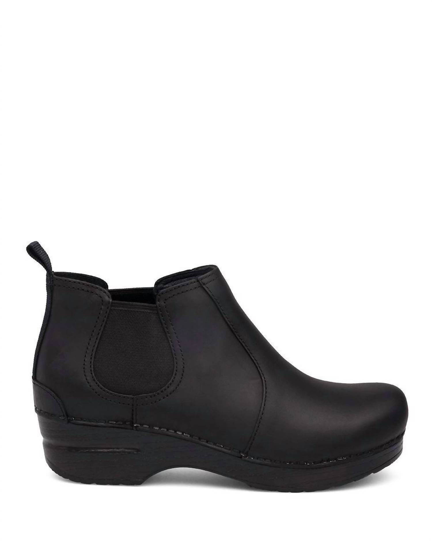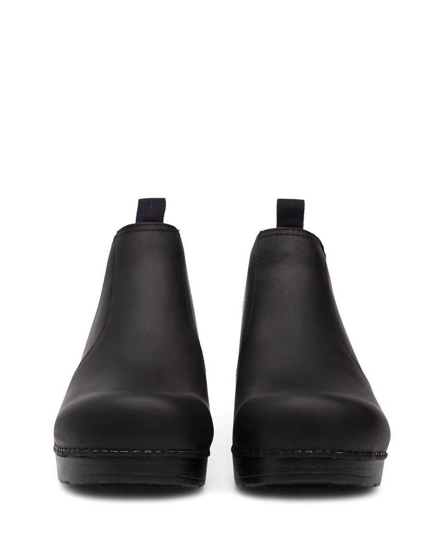Step into sophistication with the Women's Frankie Oiled Boot by Dansko, designed for minimalist flair and comfort. These black ankle booties feature a practical flat heel, round toe, and dual side goring for a secure fit. The cushioned footbed offers arch support, making them perfect for all-day wear. Effortlessly slip into these versatile boots that are ideal for spring engagements and Thanksgiving celebrations.