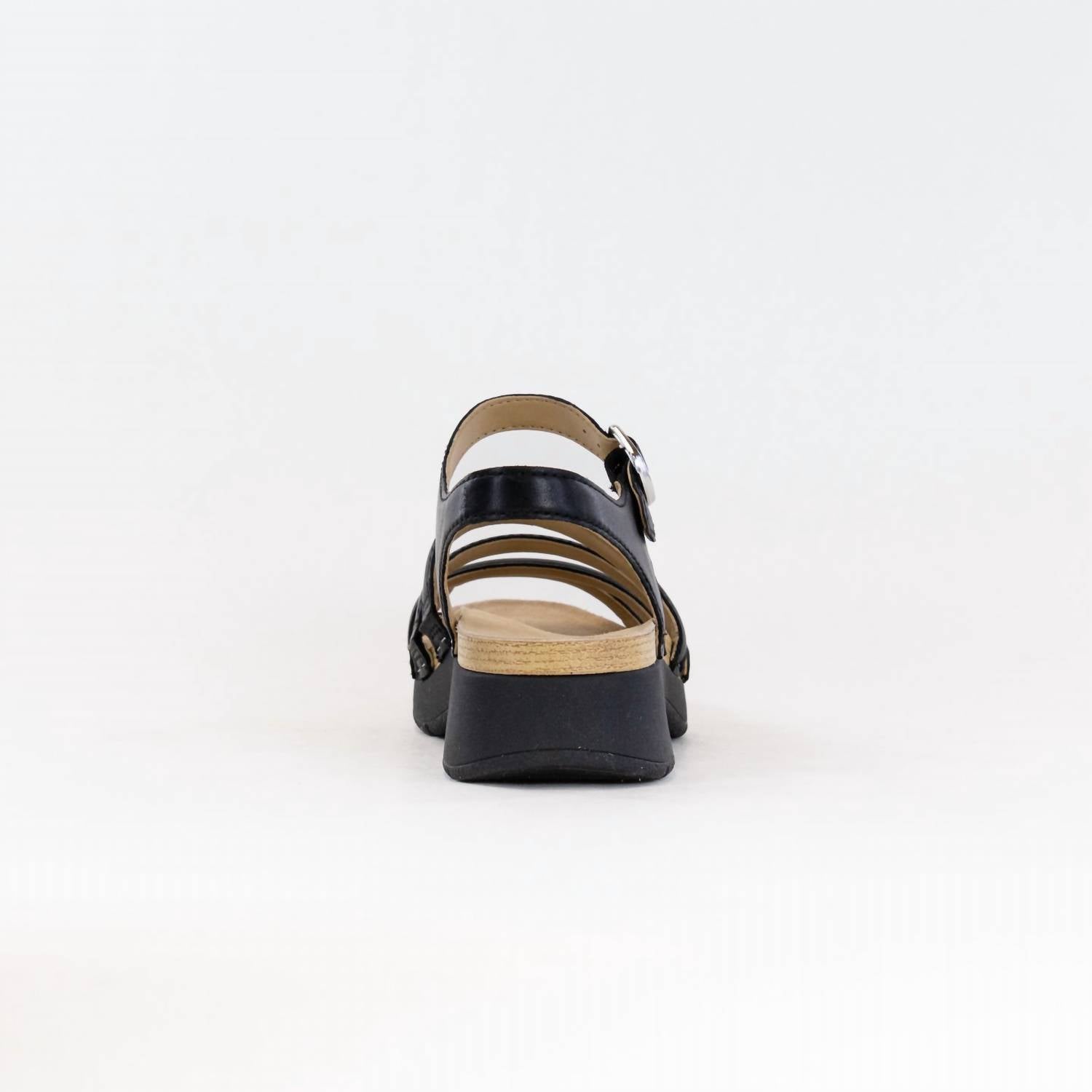 Step into style with the Women's Roxie Sandal by Dansko, a minimalist choice perfect for a dinner party. This sandal features simple straps in black, made from high-quality leather for a sophisticated touch. Designed with patented stapled construction, it includes a soft lining, chrome-free suede socklining, cushioned energy-return PU footbed, and a lightweight, contoured BPU midsole for unparalleled comfort. The flexible TR rubber outsole ensures ease of movement, while the open toe and flat heel make it ideal for the spring season.