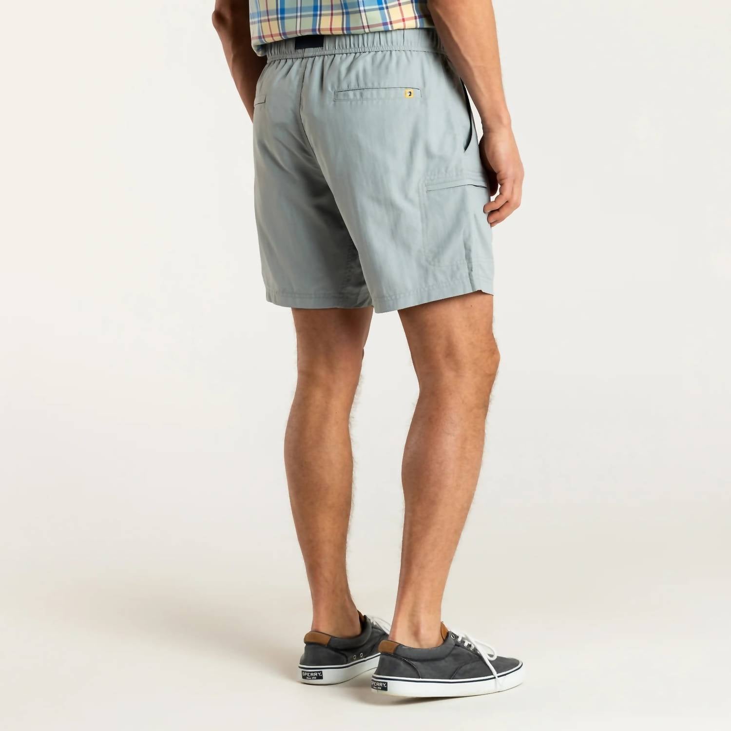 Introducing the On The Fly Performance Short by DUCK HEAD, a Quarry Grey essential for the active yet stylish man. This men's short, crafted from 100% Nylon Ripstop with a 7" inseam, features a breathable, quick-dry, and water-repellent finish with UPF 30+ protection. Designed for versatility, it includes an elastic waistband with an adjustable belt, secure zip pockets, and a faux fly for effortless movement. Care: Machine wash cold with like colors, gentle cycle, tumble dry low, remove promptly, and iron cool if needed.