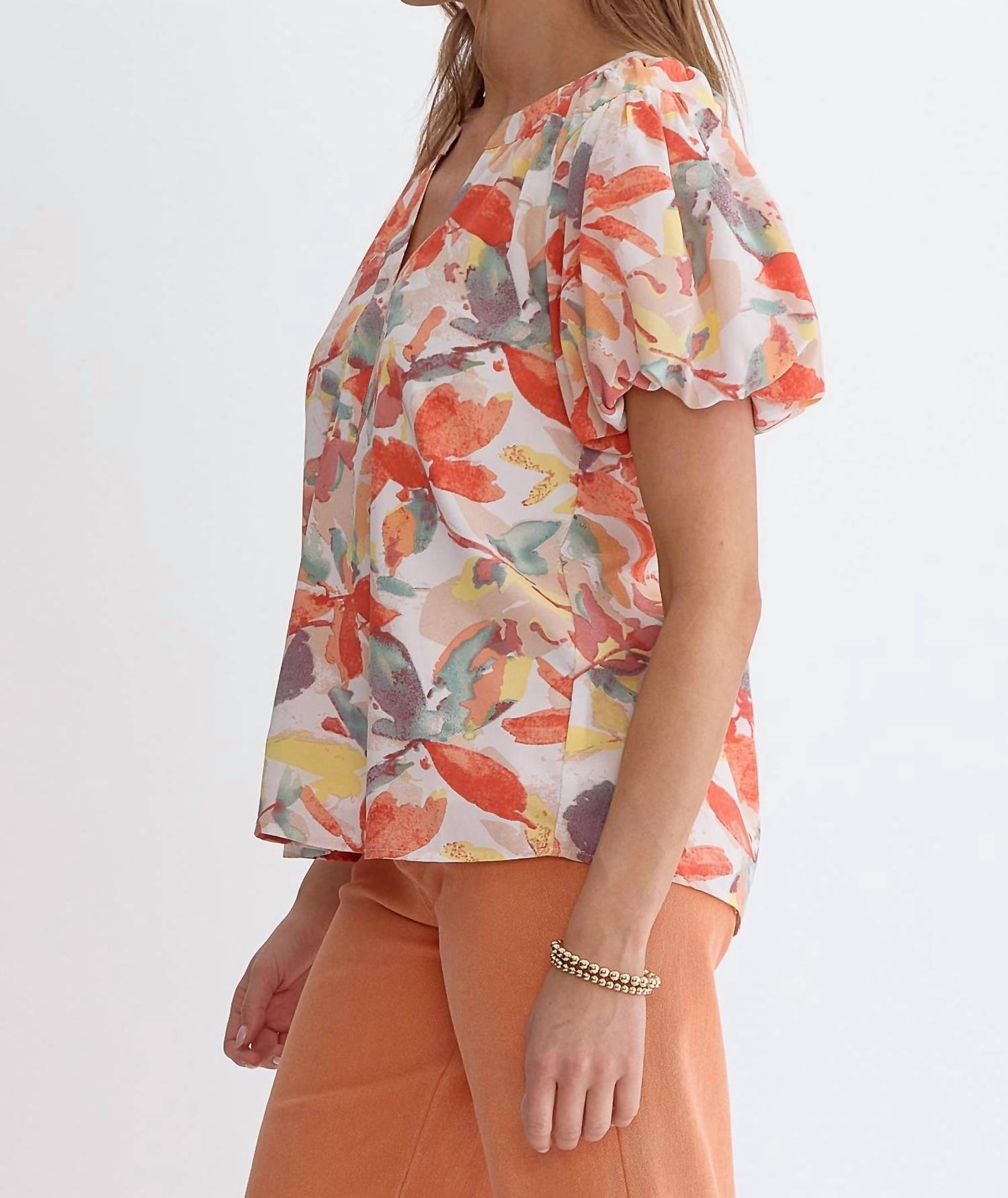 This Floral Print Bubble Sleeve Blouse features a charming V-neckline and feminine floral print. The unique bubble sleeves with elastic cuffs add a whimsical touch, while the lightweight, non-sheer woven polyester ensures comfort and a relaxed fit. Made from 100% Polyester.