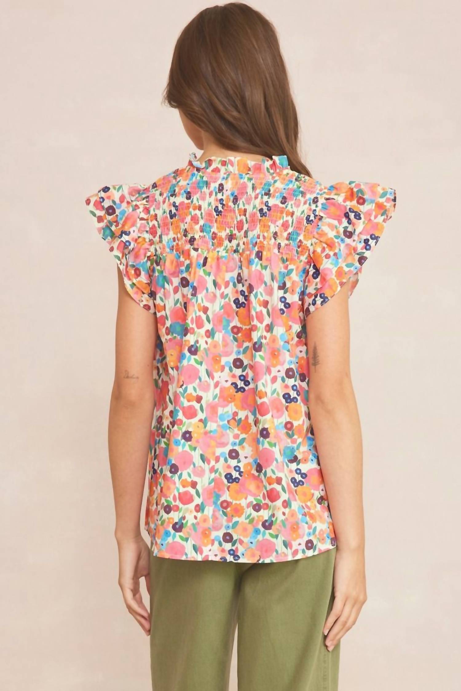Entro - Floral Ruffle Sleeve Top