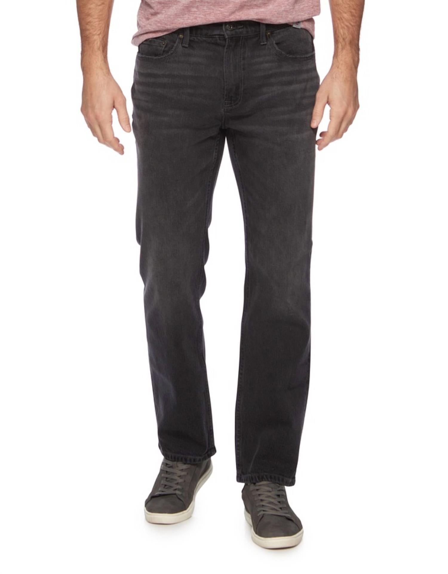 Introducing the Beckett Nashville Straight Jean by Flags & Anthem, crafted in a versatile Black Wash with a textured pattern. These men's jeans feature a relaxed fit with a straight leg style and mid-rise waist. Made from a durable cotton blend of 98% Cotton and 2% Spandex, ensuring comfort and flexibility. Closure: Button closure. Care: Turn garment inside out, machine wash cold, and tumble dry low. Inseam: 32".