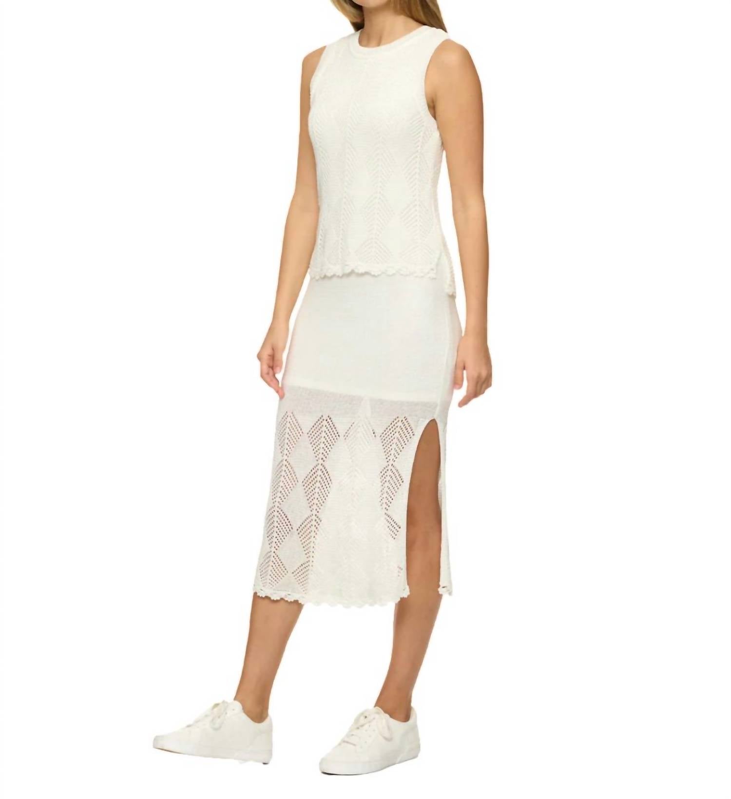 Unveil your romantic side with the Crochet Sweater Dress by Flags & Anthem, a masterpiece in Vintage White perfect for a blend of western charm and vintage flair. This sleeveless, sheath silhouette is crafted from soft, breathable rayon featuring a textured crochet design, offering both allure and comfort. Its midi length ensures a flattering fit, making it a chic choice for spring occasions like beach days or minimalist Thanksgiving gatherings. Care is effortless with machine wash instructions, adding convenience to its timeless elegance.