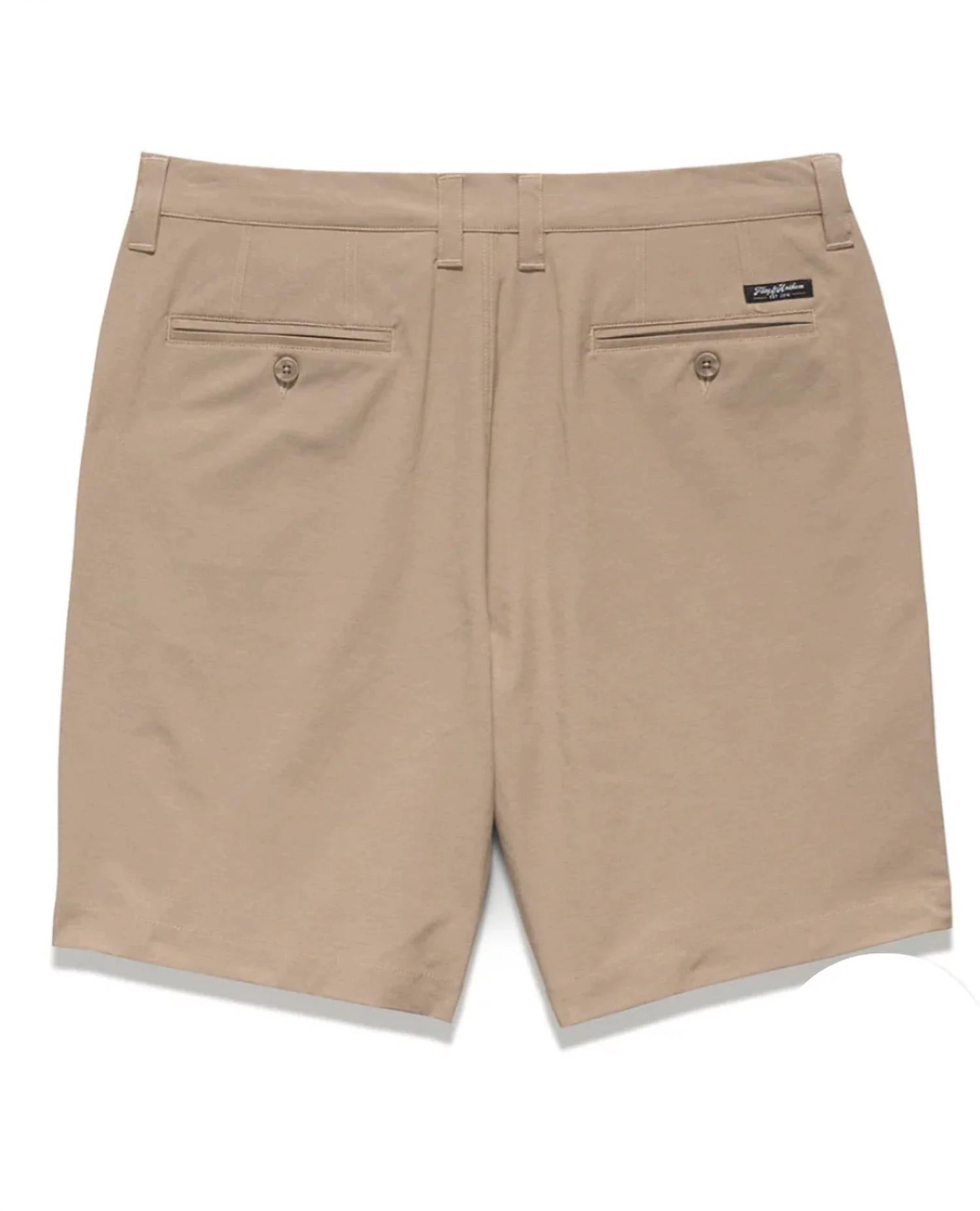 Introducing the Millen Performance Hybrid Short by Flags & Anthem, a versatile summer essential for men in a solid stone color. These shorts are crafted from a lightweight, breathable blend of 74% polyester, 17% cotton, and 9% spandex, enhanced with MadeFlex Performance Technologies for built-in stretch, quick drying, and UPF 30 sun protection. Designed with an 8” inseam, they feature a regular rise and straight leg opening, complemented by angled front and back welt pockets with a button closure and a zip fly front, ensuring all-day comfort and functionality. Care: Machine wash and tumble dry for effortless maintenance.