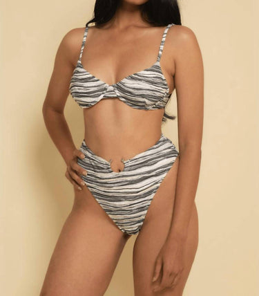 Presenting the Pierced Paula Bikini Bottom by Montce, a chic swimwear piece perfect for sunny beach days. This high-waisted bikini features a stylish U-loop trim in the center-front waist, and its high-leg French cut elegantly elongates the legs. Crafted from 85% Viscose and 15% Nylon with fabric imported from Spain, this piece ensures quality and comfort. Care: Hand wash and line dry for lasting wear.