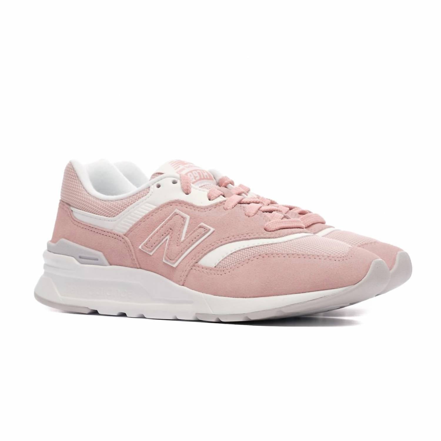 Step out in style with the New Balance Women’s CW997HSO Sneaker, a pink statement piece perfect for athleisure and fitness pursuits. This sneaker features a textile upper with suede overlays, highlighted by a lace-up closure for a tailored fit and a convenient pull tab at the heel. Enjoy enhanced breathability with a mesh textile lining and superior comfort through the padded footbed and ABZORB® midsole, which cushions and absorbs impact. Made to last, it includes ENCAP® midsole technology for added support and durability. Origin: Imported.