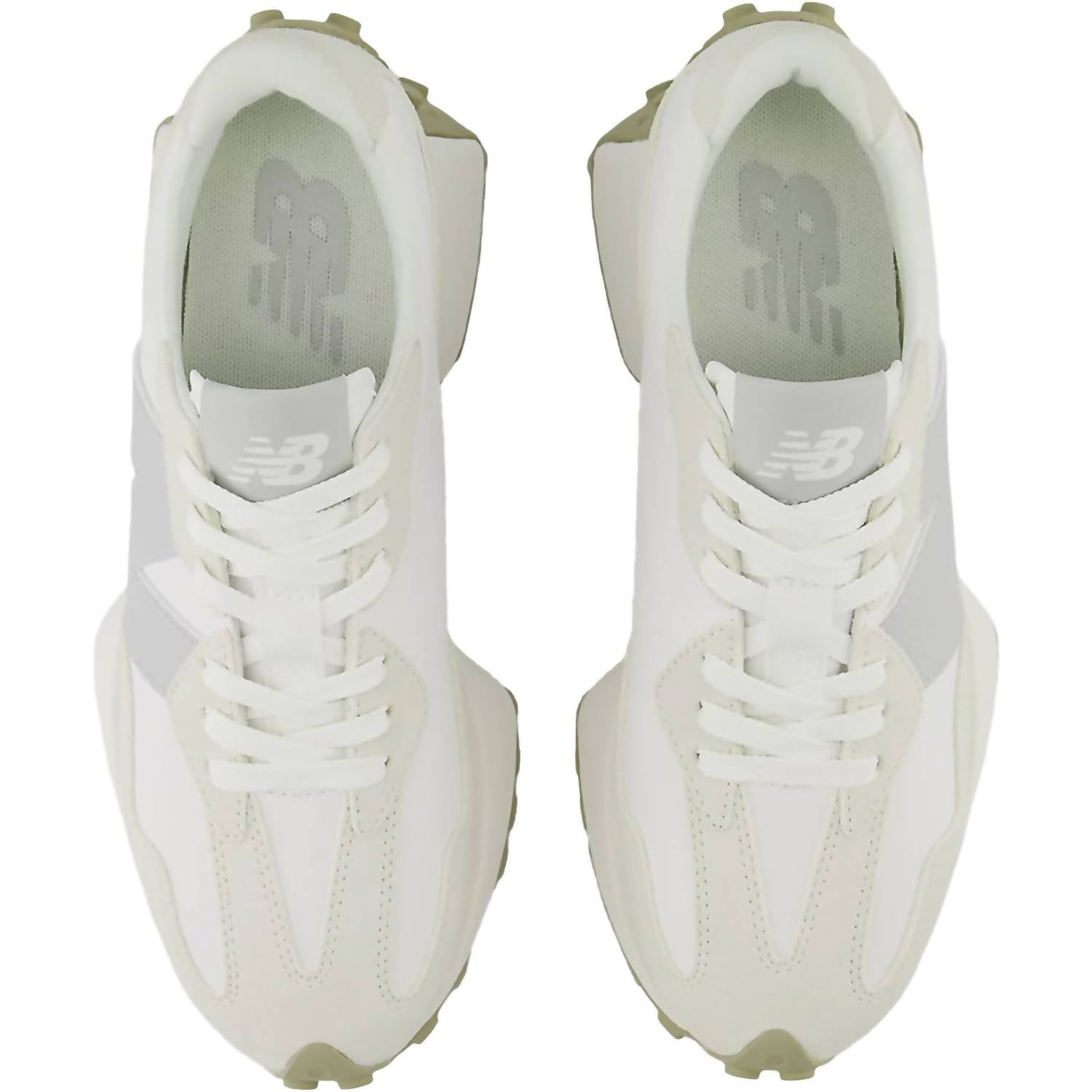 Step into the retro-modern style with the New Balance Women's 327 Running Shoes in a chic Salt/Brighton Grey colorway. These shoes feature a suede and nylon upper with eye-catching animal-print accents and an oversized N logo for a distinctive retro-inspired flair. Closure: Lace-up for a secure fit. Ideal for summer athleisure and fitness occasions with a round toe and chunky heel.