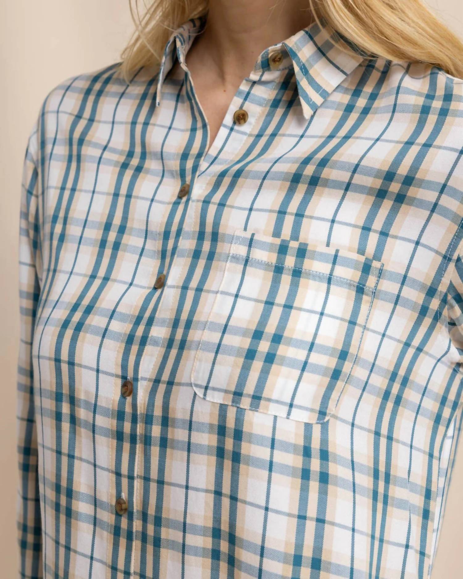 Embrace effortless style with the Cam Twill Plaid Mini Dress by Southern Tide, crafted for busy days and weekend getaways. It features long sleeves and a full button-up closure for a relaxed fit, alongside a convenient left-chest pocket. Made from soft lyocell, this shift dress in sand white plaid ensures comfort with a laid-back aesthetic. For added customization, it includes a collared neckline and practical machine wash and tumble dry care instructions.