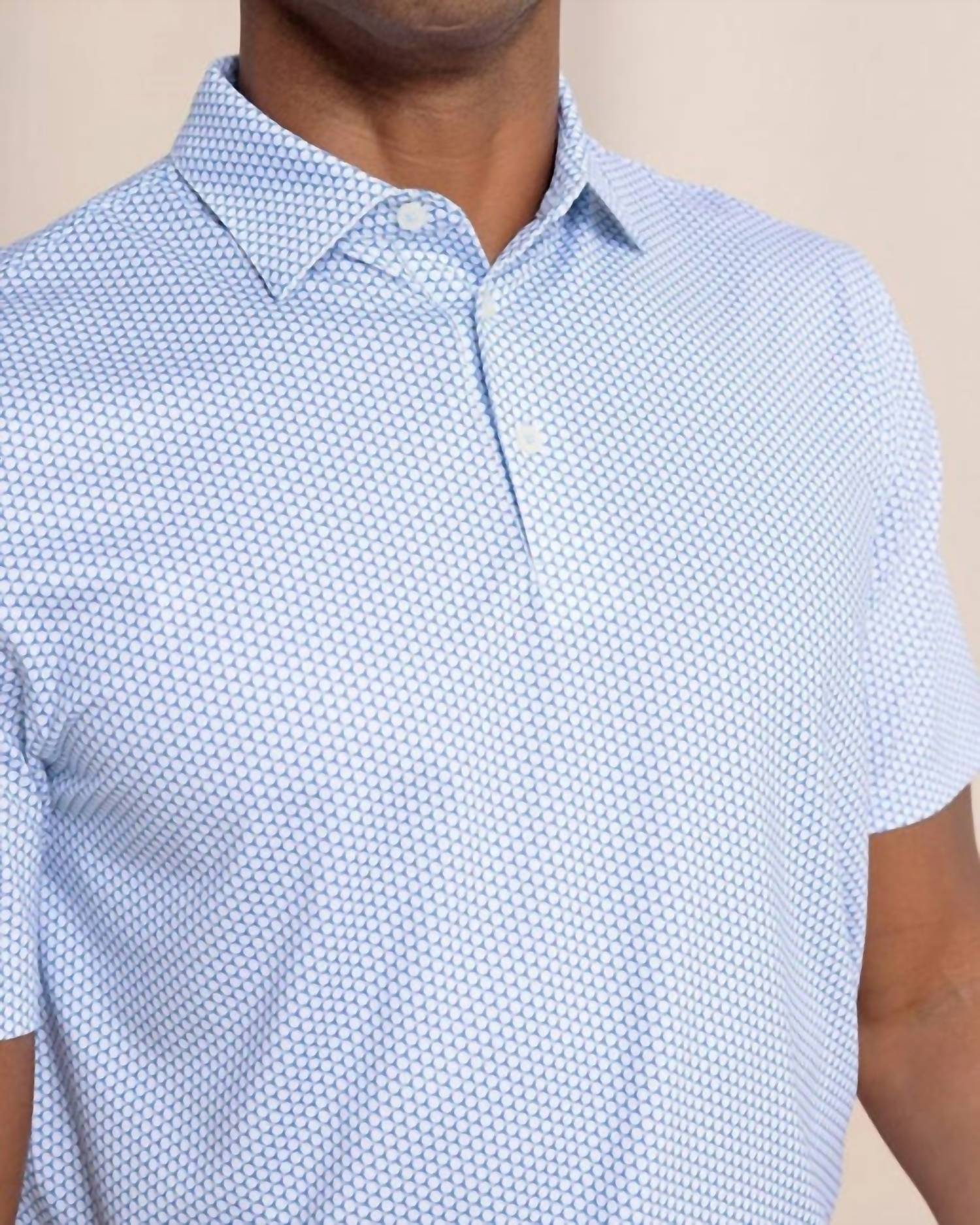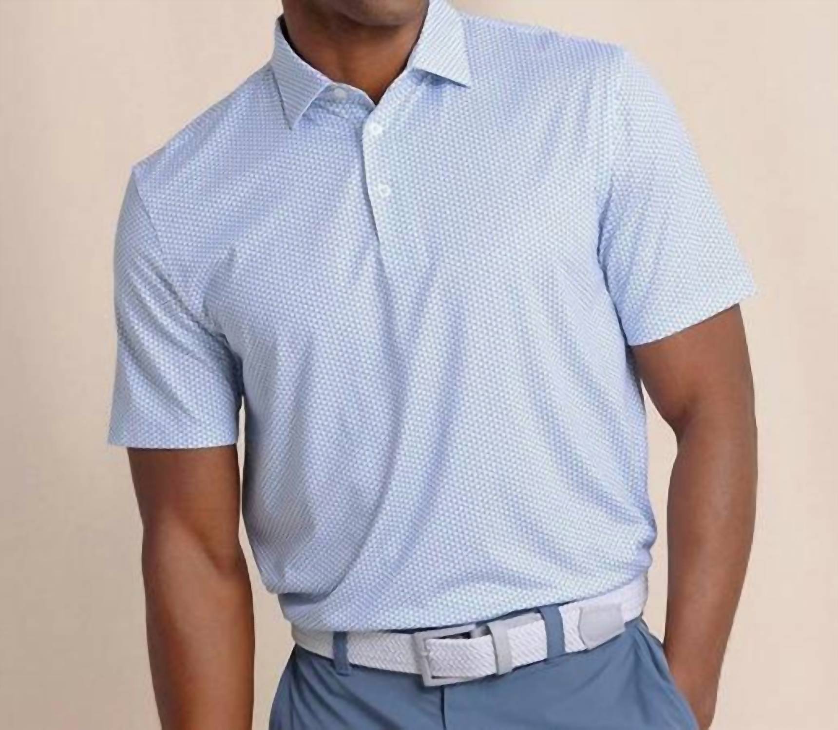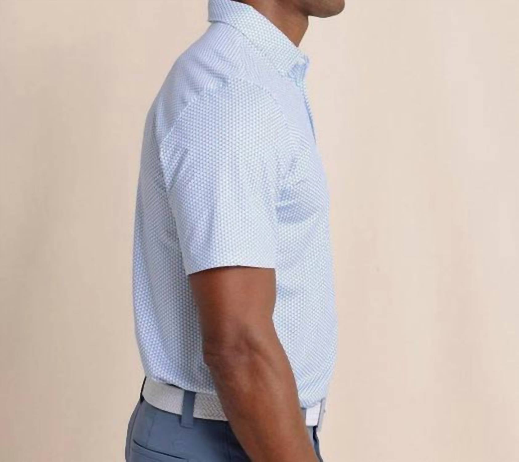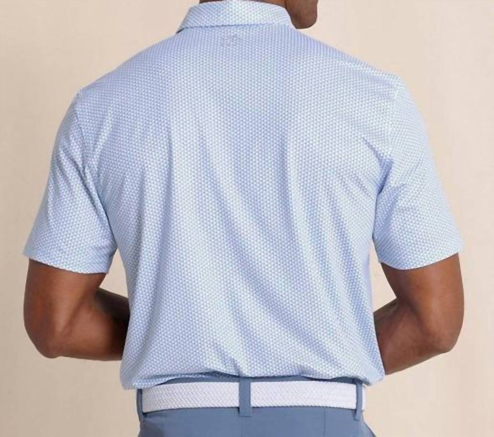 Wicking. Stretch. UV Protection. More Responsible Materials. Self-collar. Three-button placket. Drop-tail hem. Internal collar stays in the collar. Branded imitation mother-of-pearl buttons. Outline Skipjack heat seal on back neck. Machine Wash.