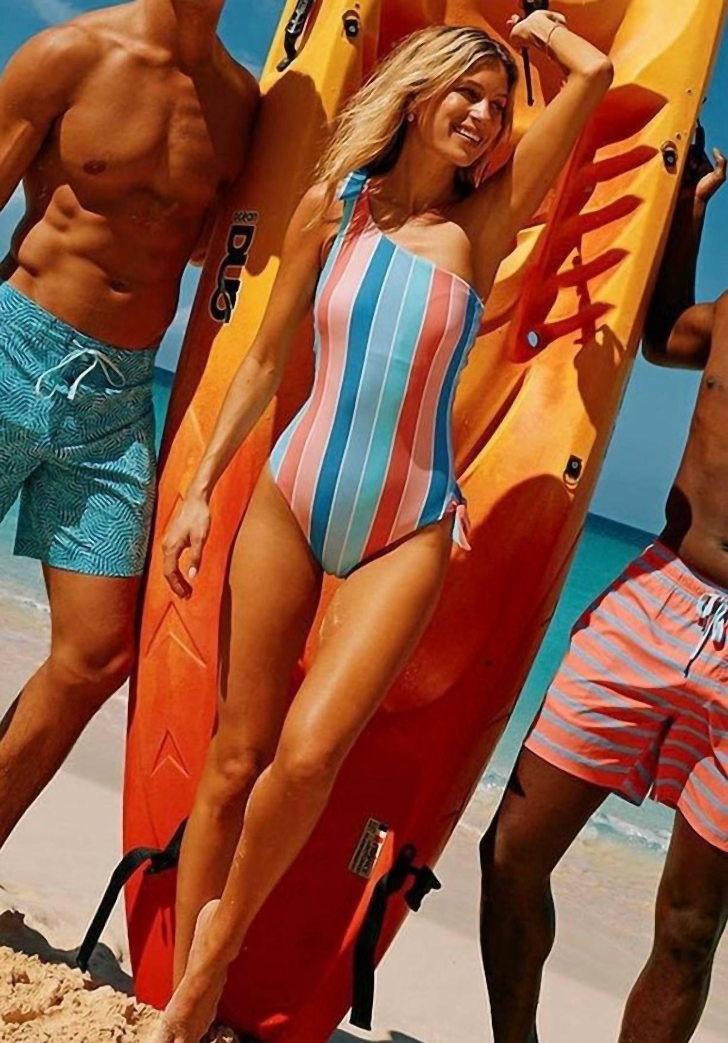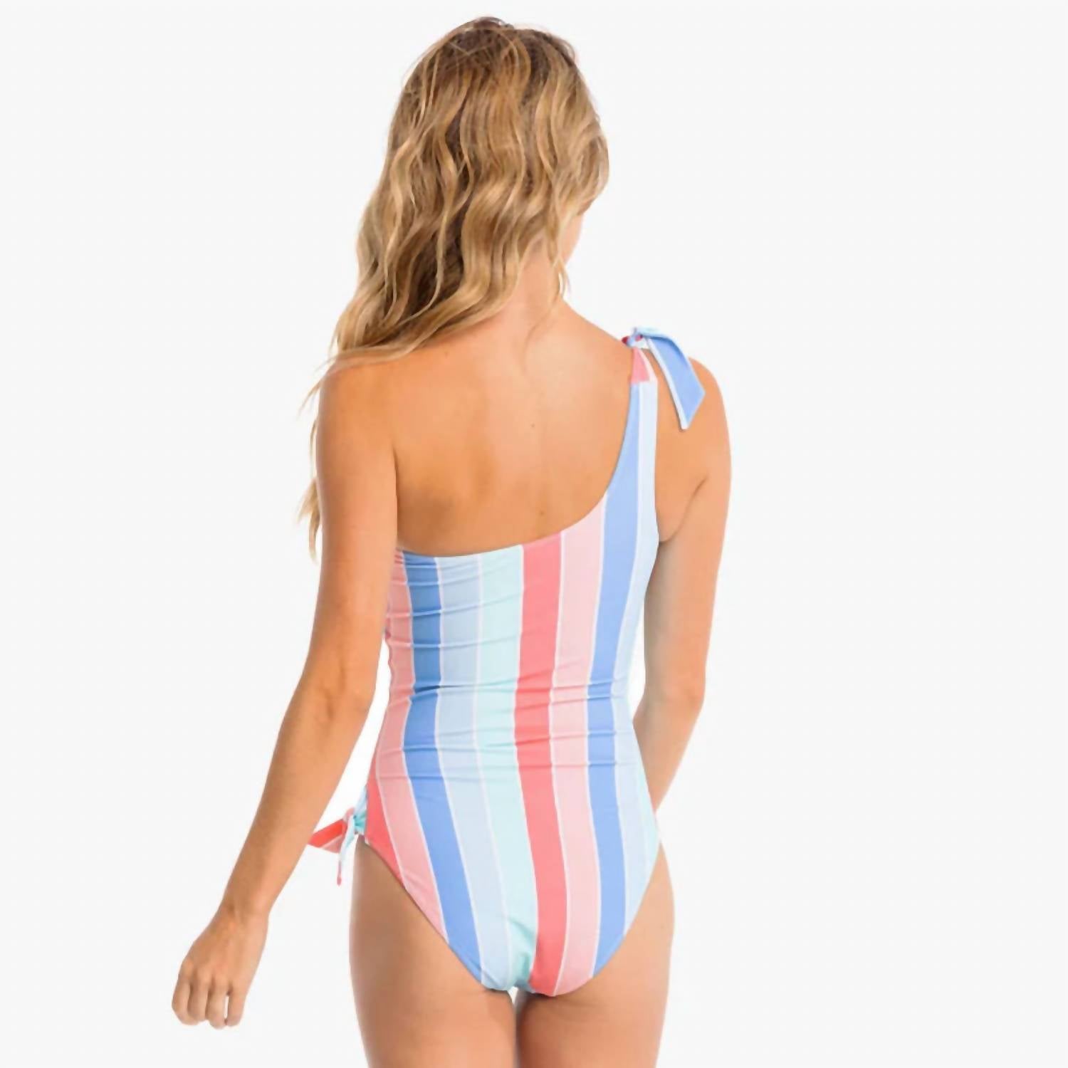 Dive into summer with the Southern Tide Women's Sunny Days Stripe One Piece Swimsuit in vibrant Flamingo Pink. This fitted, sleeveless swimsuit offers UV protection and is designed with quick-dry moisture management for all-day comfort. Made from a Nylon Blend (80% Nylon, 20% Spandex), it features a unique one-shoulder design with a functional tie and removable cups for customizable support. Care instructions include hand washing and line drying to maintain its striking look for seasons to come.