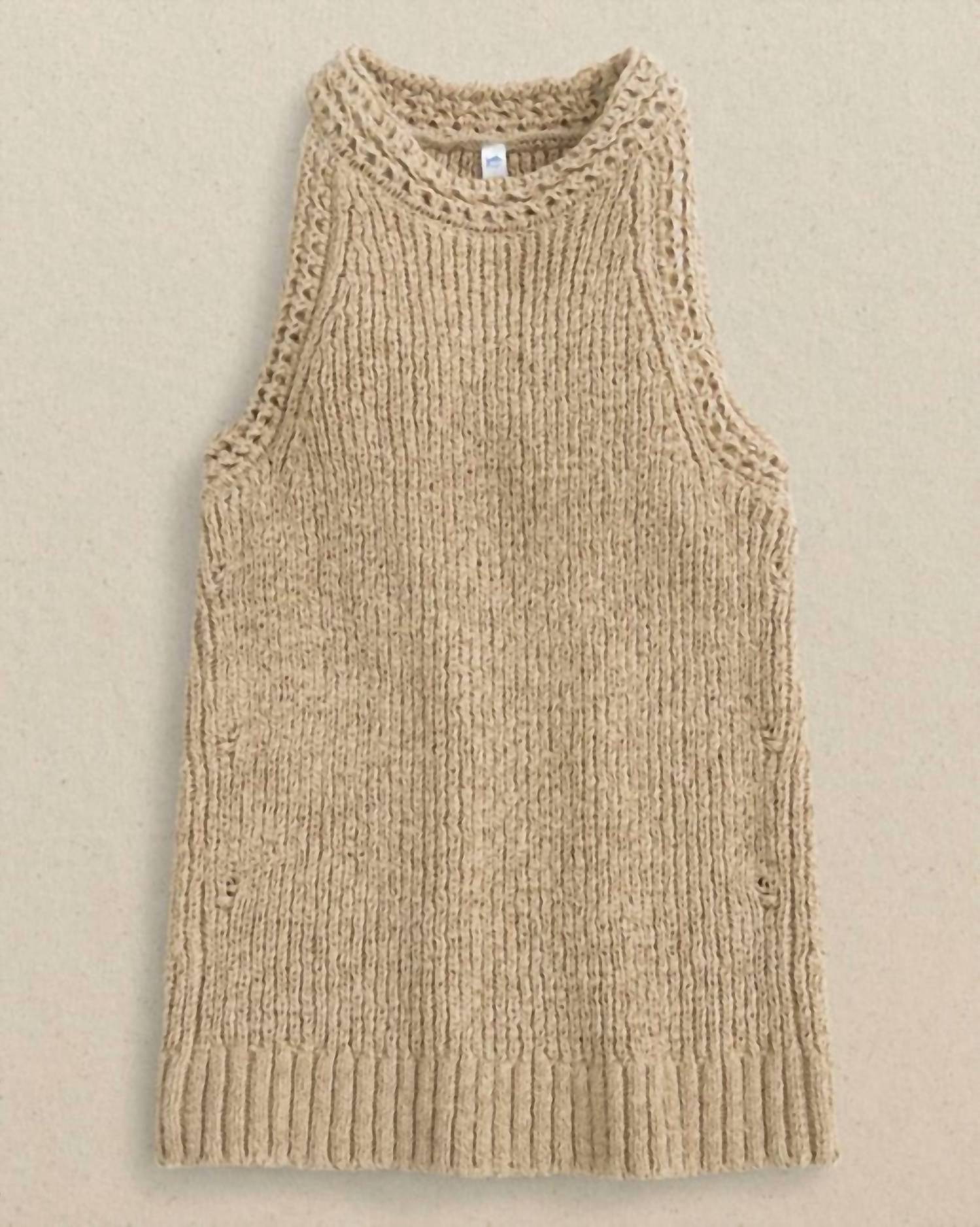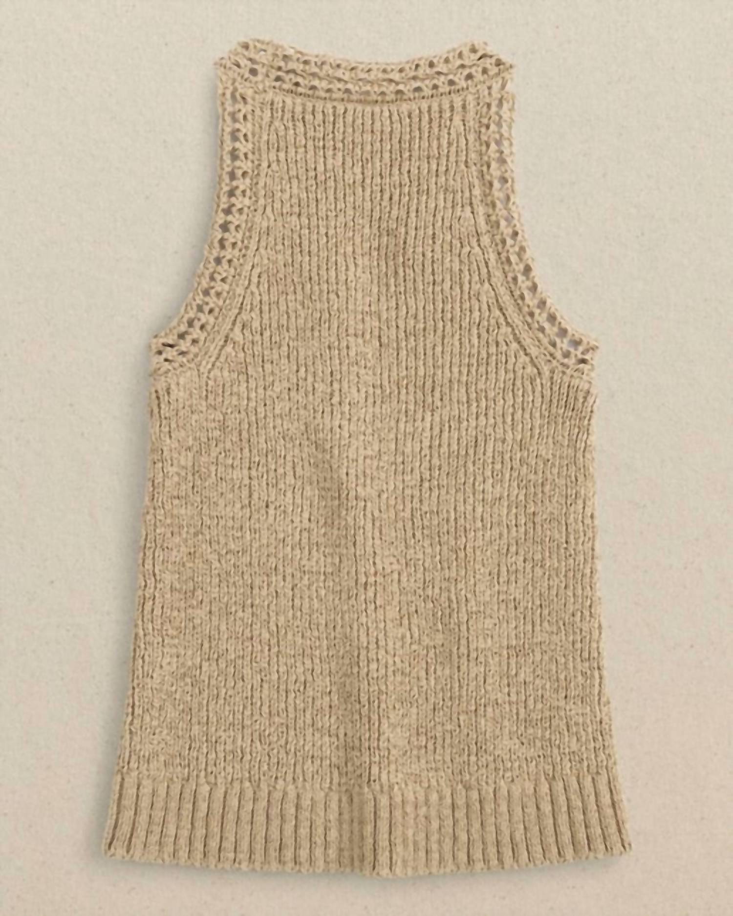 A delicate sweater tank adds a touch of springtime to any warm-weather wardrobe. Featuring decorative stitching along the edges and made from a breathable cotton blend, this tank allows you to embrace the season with both style and comfort.