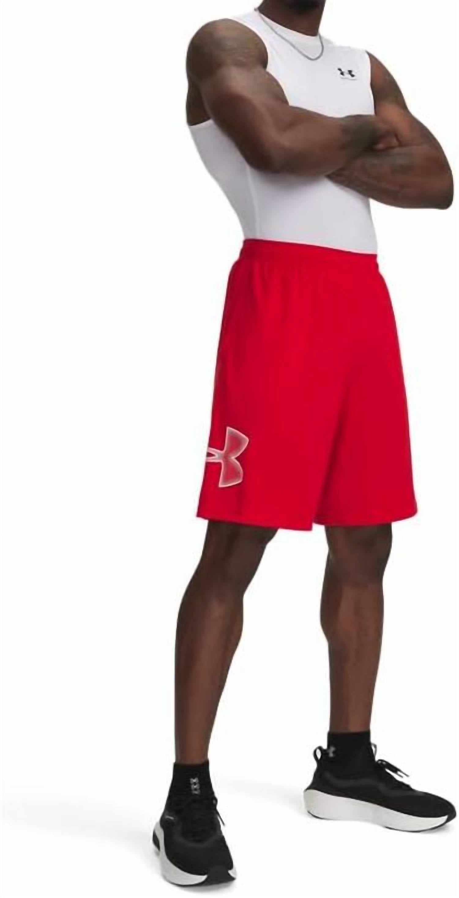 Elevate your game day attire with the Tech Graphic Shorts by Under Armour, designed in a striking red with a graphic pattern. Crafted from nylon, these athleisure shorts are equipped with mesh hand pockets and an encased elastic waistband with an internal drawcord for a customized fit. The pull-on style ensures ease of use, while the quick-drying UA Tech™ fabric provides ultra-soft comfort that's both sweat-wicking and fast-drying to keep you at your best. Care is effortless with machine wash and tumble dry instructions.