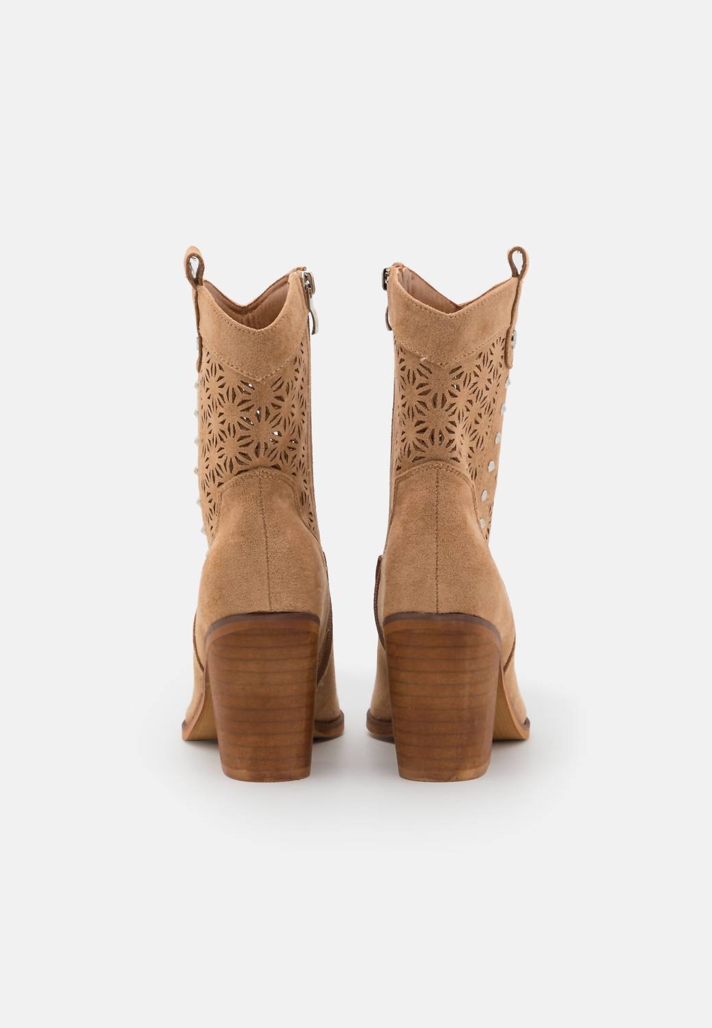 Soft suede upper with die-cut design. Side zipper closure and non-slip rubber sole that provides safety and stability. 3.54" high heels.