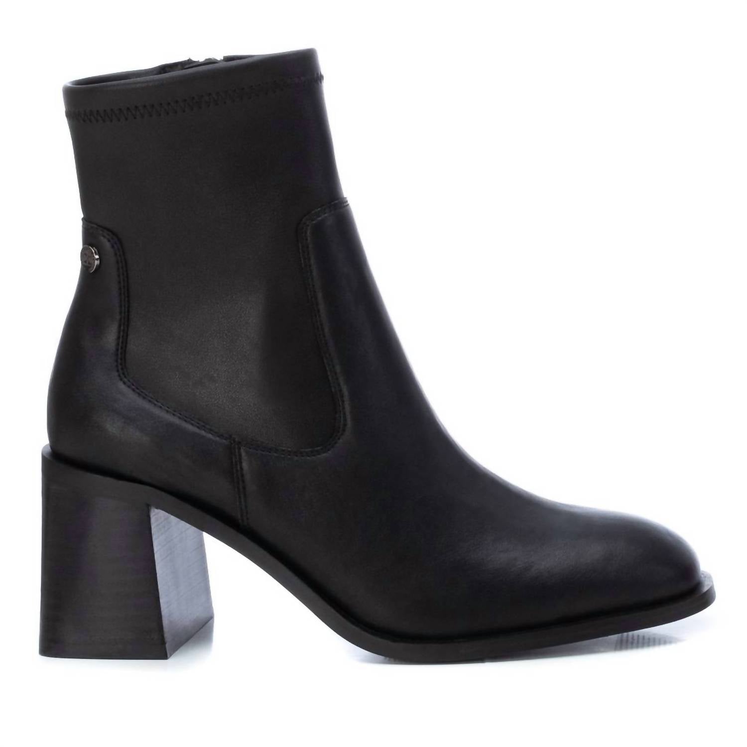 Made of material that mimics the skin, Chelsea type sock that fits the leg. Side zip. 7 cm wide heel with non -slip sole.