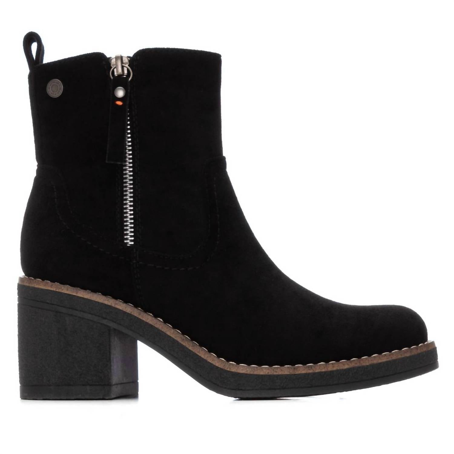 Elevate your wardrobe with the Women's Refresh 173038 Booties by Xti, crafted from luxurious leather. These black ankle boots are designed with a block heel and round toe, perfect for any spring evening event. The finely crafted booties are tailored for women seeking quiet luxury without compromising on style. Embrace both elegance and comfort with these versatile shoes made for sophisticated occasions.