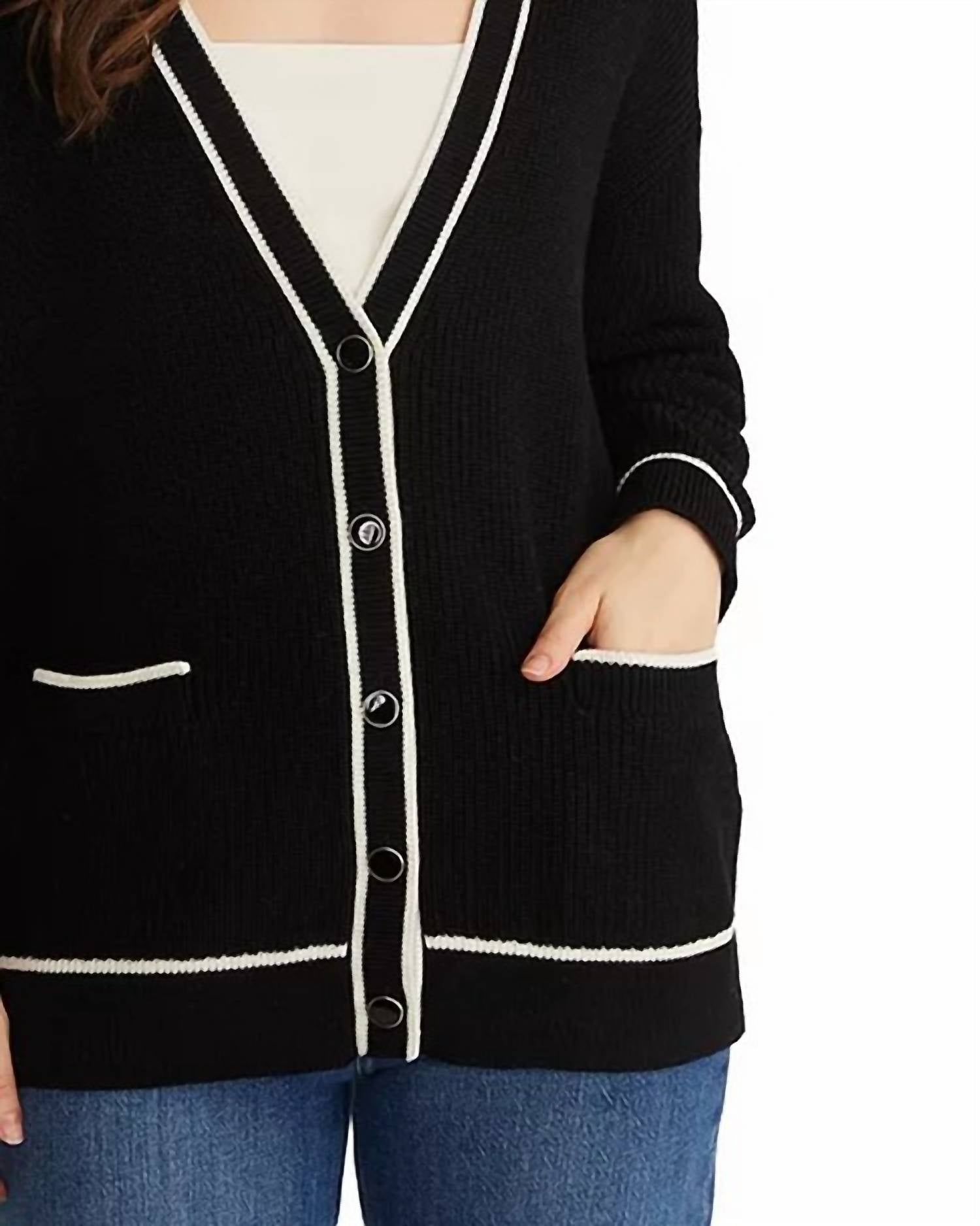 Embrace cozy sophistication with the Emma Cardigan with Tipping by 525 America, a perfect addition to any wardrobe. This textured cardigan features long sleeves and a convenient button closure, offering a relaxed fit with its generous 27" length. Crafted from 100% Cotton, it provides both style and comfort, complete with practical front pockets. Care for this garment easily with machine wash and tumble dry instructions.