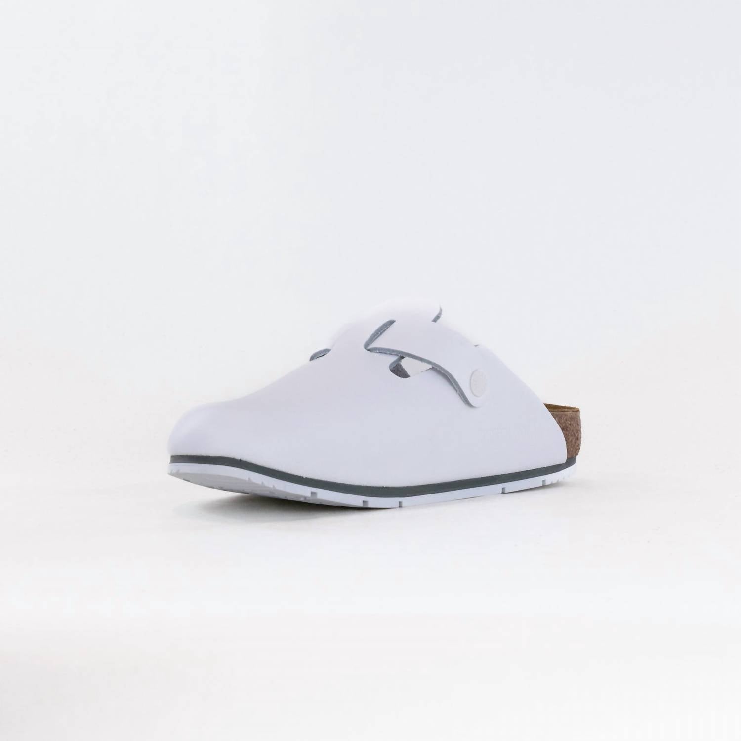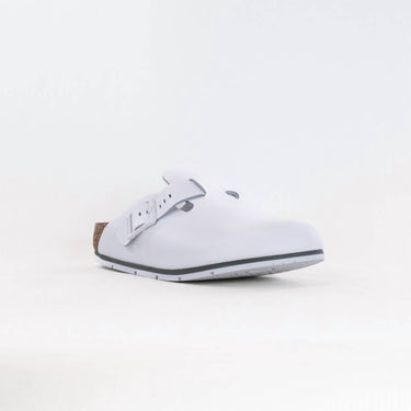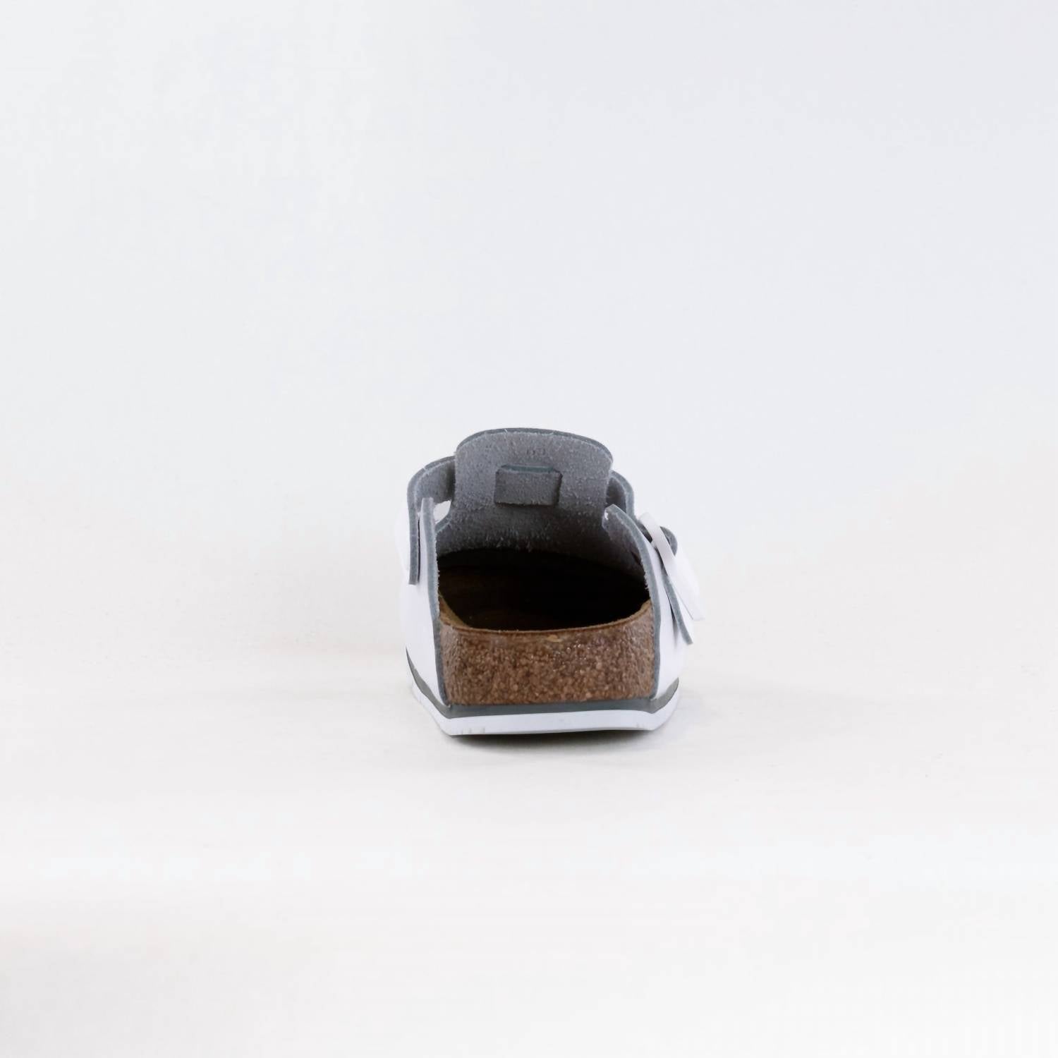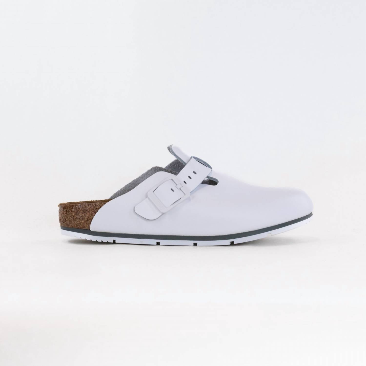 Slip them on and go! Experience the BIRKENSTOCK Women's Boston Pro Clogs, expertly crafted to enhance functionality for those constantly on the move. These versatile clogs feature a fluid-resistant, PU-coated natural leather upper and a durable, slip-resistant TPU outsole with pronounced tread for safety. The contoured cork-latex footbed and cushioned PU midsole offer custom support and shock absorption, while an adjustable strap with a metal pin buckle ensures a secure fit. Embrace ultimate comfort with every step, ideal for vacation or streetwear in any spring wardrobe.