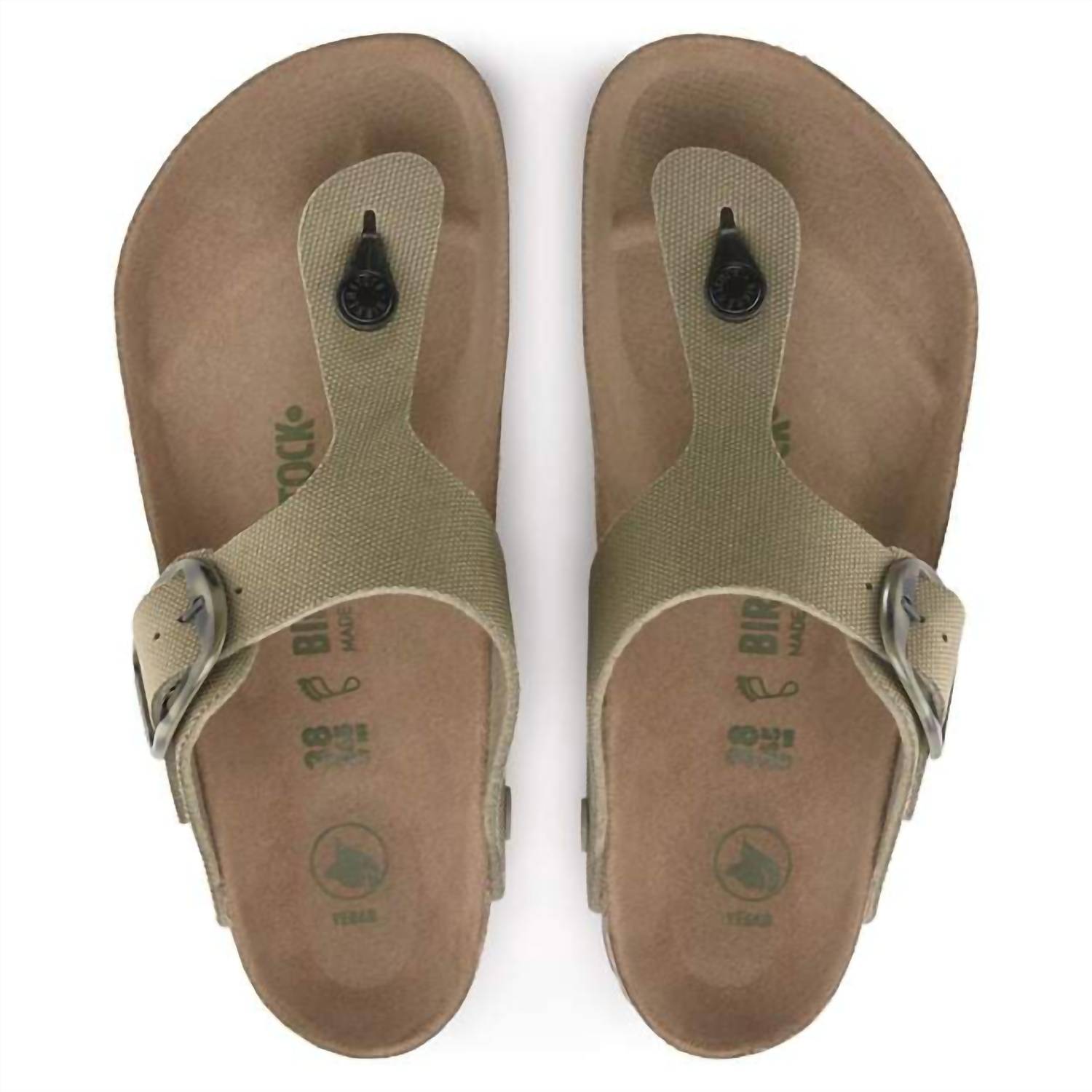 Discover the BIRKENSTOCK Women's Gizeh Big Buckle Sandal in a chic Faded Khaki hue, perfect for your spring vacation wardrobe. Designed with an open toe and flat heel style, this sandal provides a comfortable fit with a heel height under 1 inch, making it ideal for long walks or leisurely strolls. Embrace the boho chic trend effortlessly with this versatile piece, crafted for women who appreciate both style and comfort. Made for adult women, these sandals are a must-have for a stylish, laid-back look this season.