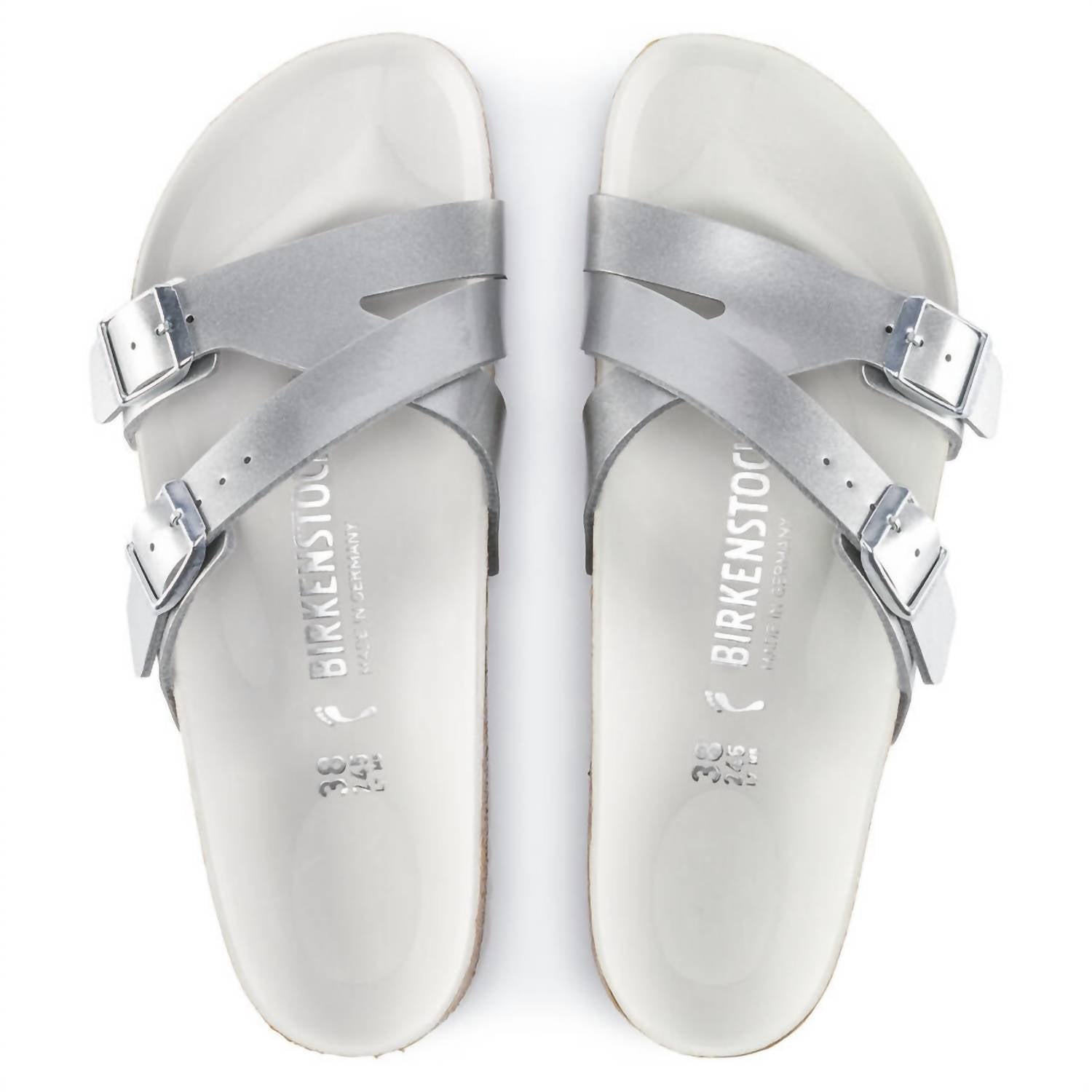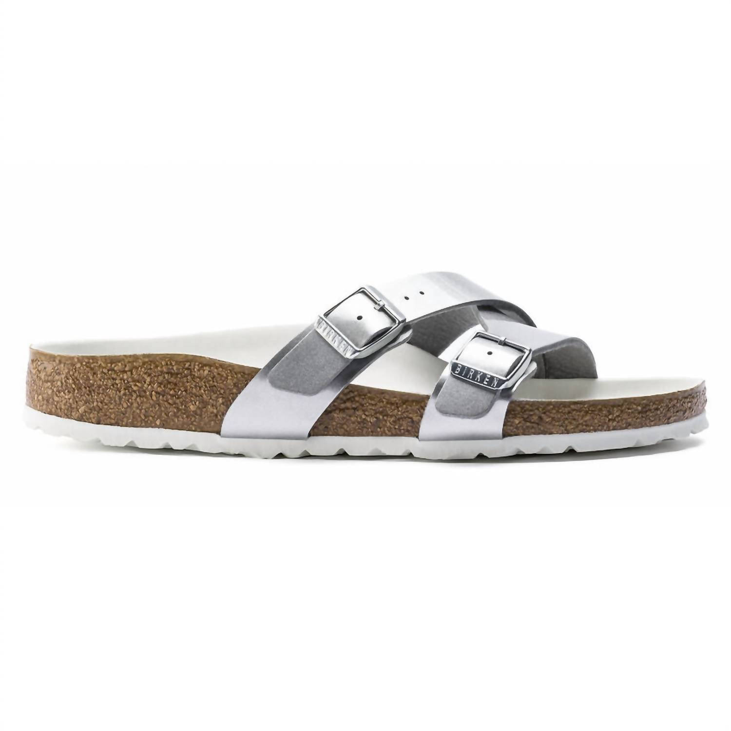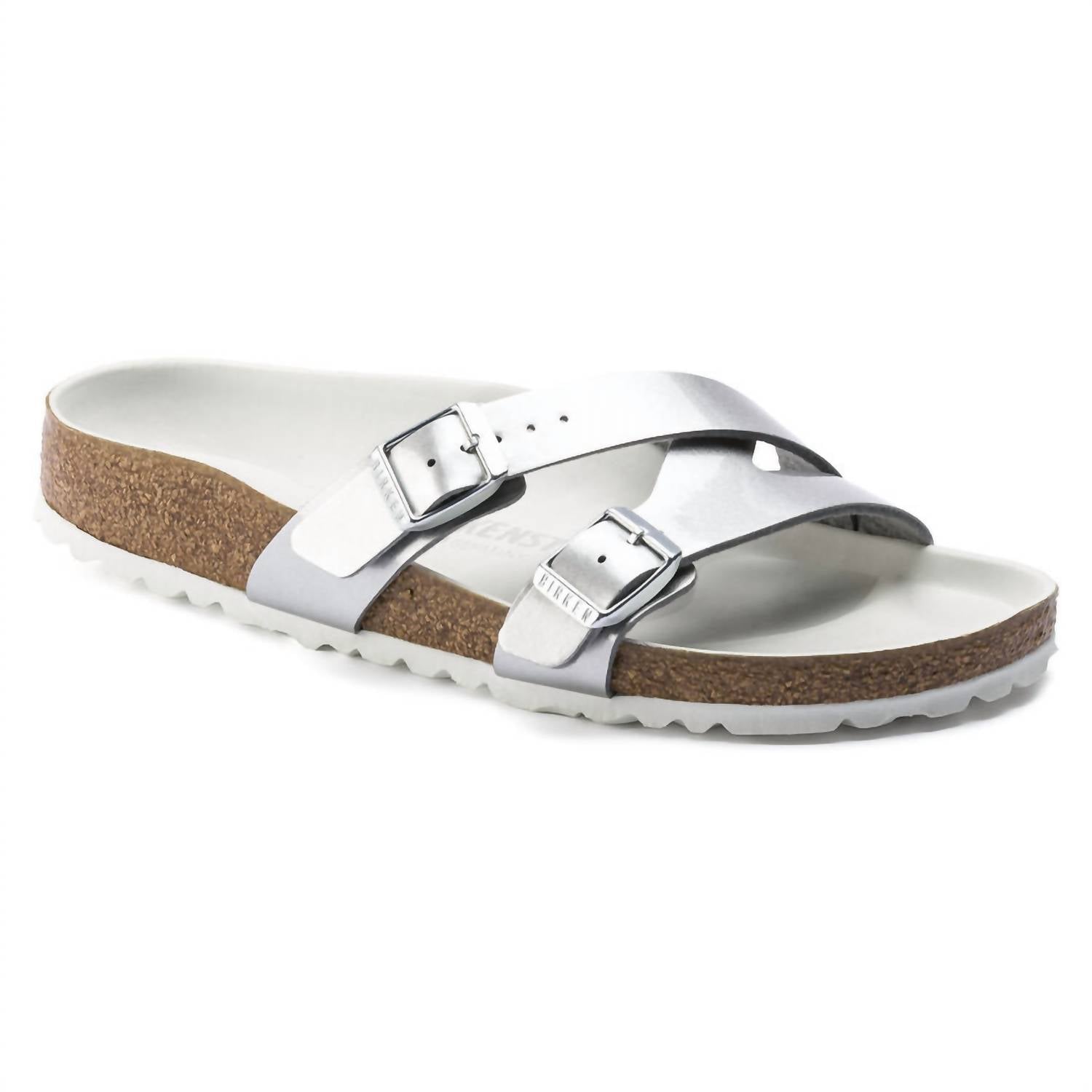 Step into summer with the Women's Yao Balance Sandals by BIRKENSTOCK, an asymmetric marvel designed to captivate with its unique flair. Crafted from BIRKENSTOCK's Birko-Flor, these sandals are skin-friendly and durable, ensuring comfort and style during your vacation adventures. The footbed is anatomically shaped with cork-latex and lined with suede for optimal comfort, while the sole is made from lightweight EVA material. Additionally, the two adjustable metal tongue buckles offer a personalized fit, and each pair is proudly made in Germany.