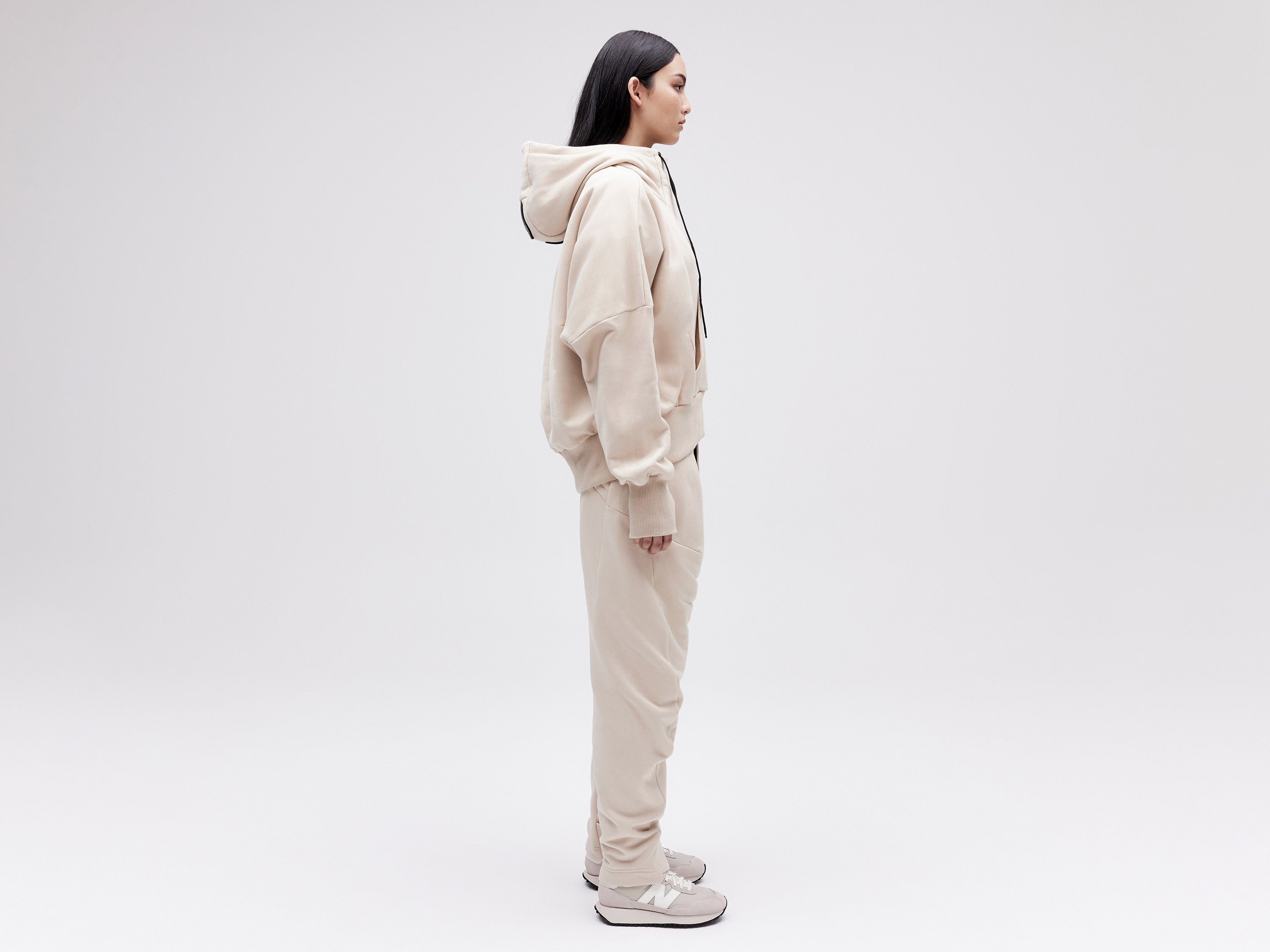 Crafted from luxuriously soft Italian organic cotton fleece, our Cropped Hoodie has been designed with a sporty feminine silhouette. Featuring a billowing back, drop shoulders and edged with ribbing, this hoodie will provide you with the perfect definition and volume where you need it.