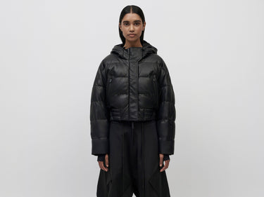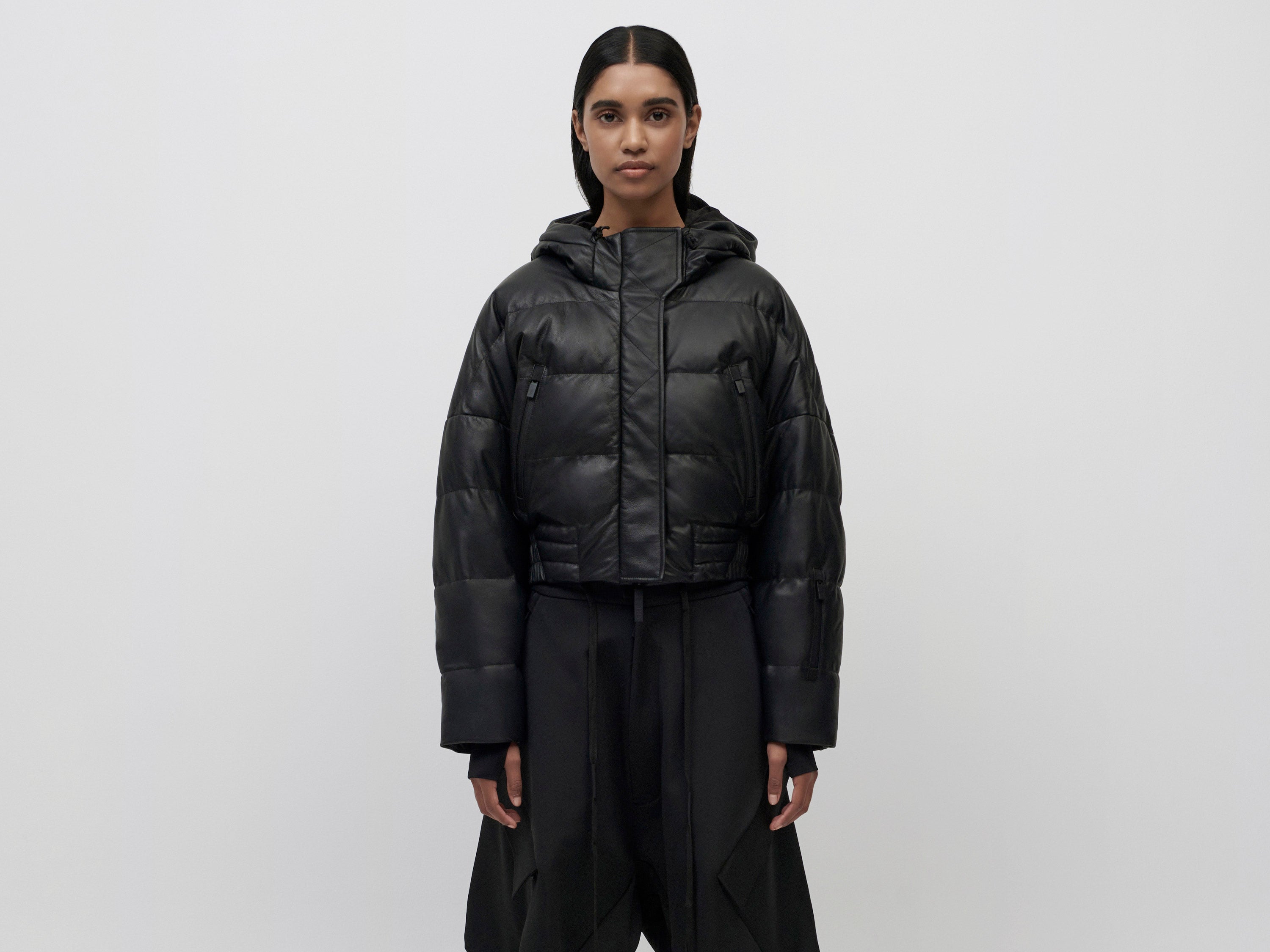 Crafted in Italy with uncompromising attention to detail and quality, our Cropped Leather Down Jacket dials luxe up to 11. It features a cropped waist, drop shoulders and a special garment wash to the fine lambskin leather that creates a natural waterproof coating. The result is a versatile statement piece, perfect for those moments that require effortless chic with a sporty silhouette.