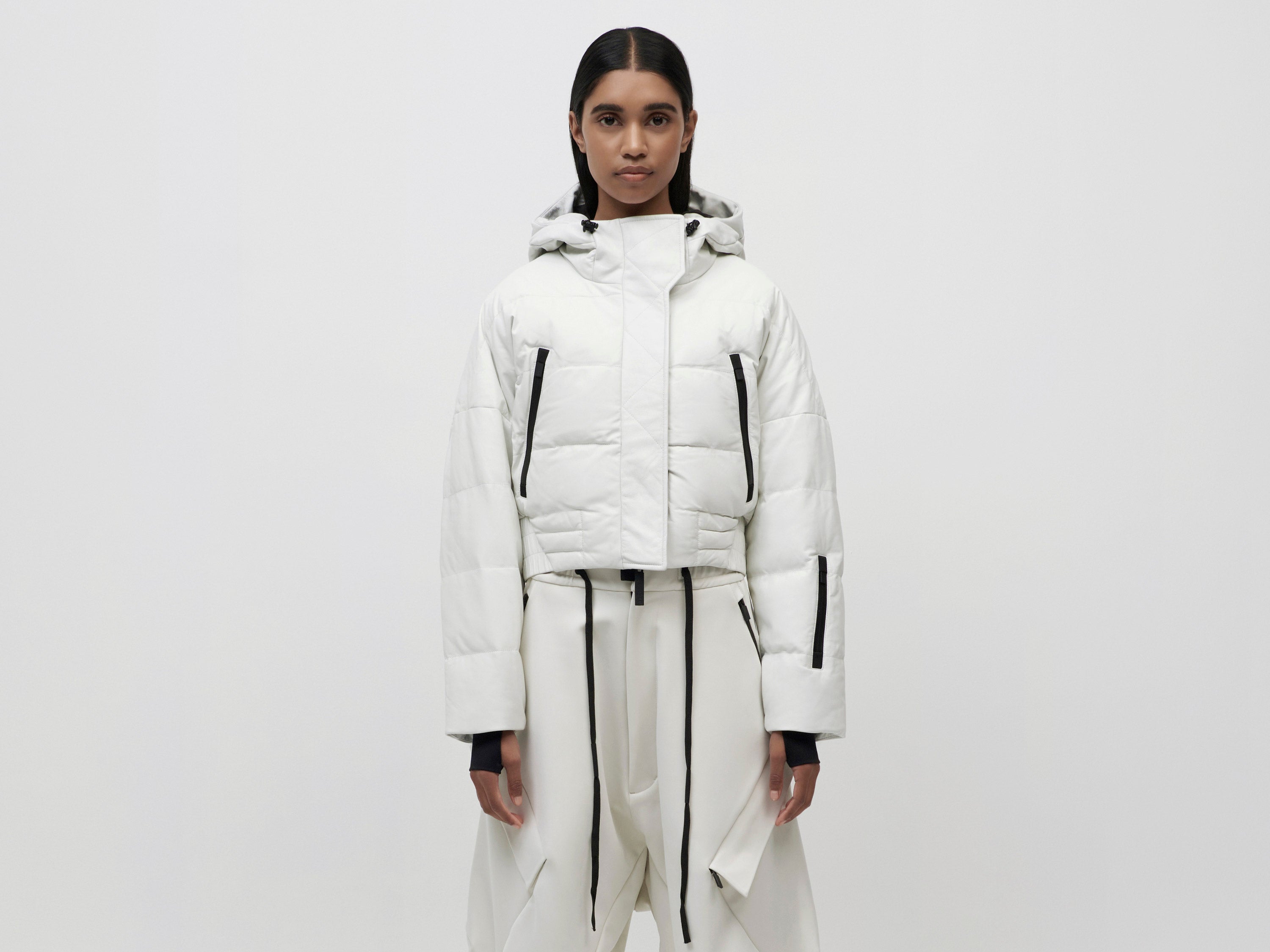 Crafted in Italy with uncompromising attention to detail and quality, our Cropped Leather Down Jacket dials luxe up to 11. It features a cropped waist, drop shoulders and a special garment wash to the fine lambskin leather that creates a natural waterproof coating. The result is a versatile statement piece, perfect for those moments that require effortless chic with a sporty silhouette.