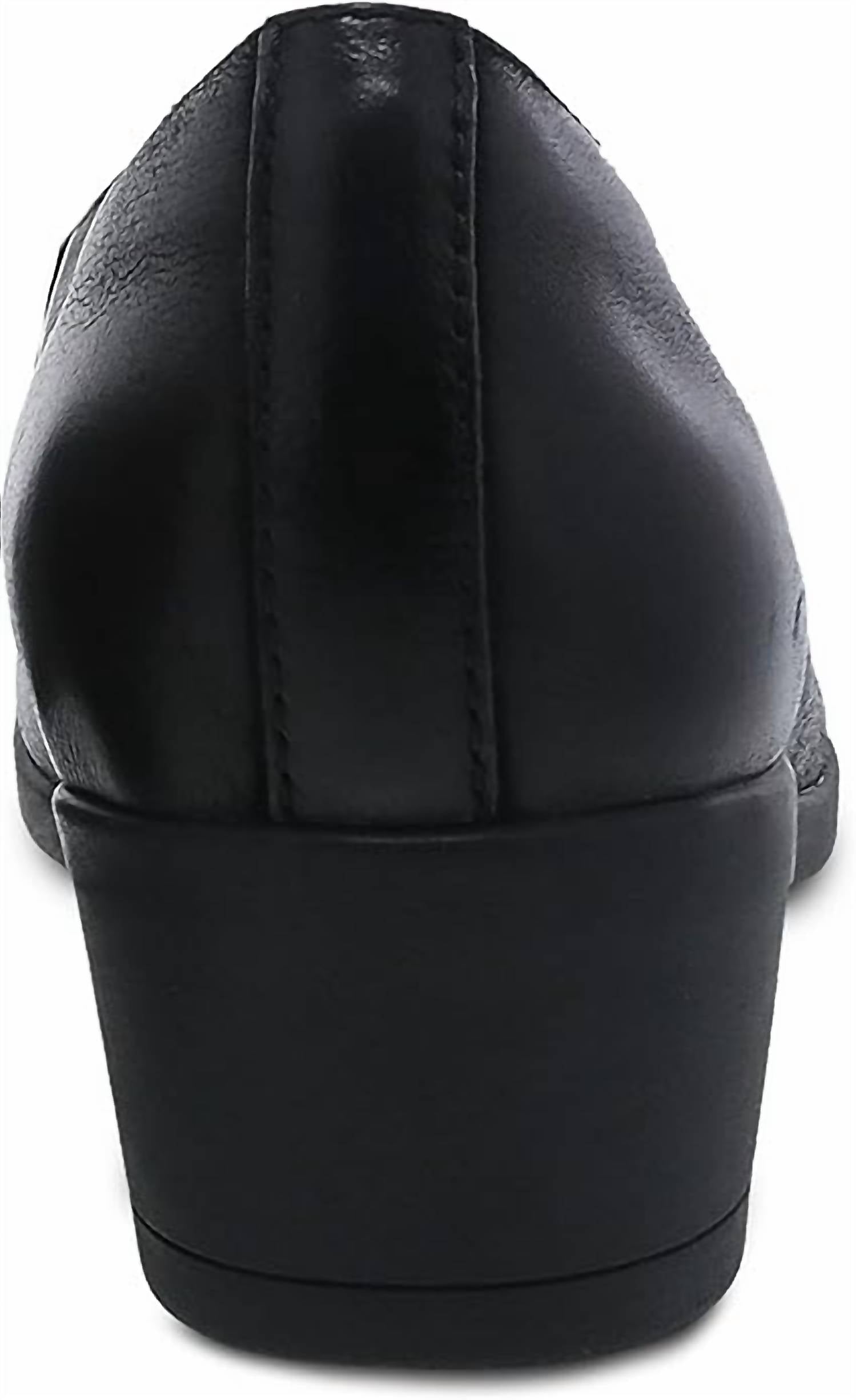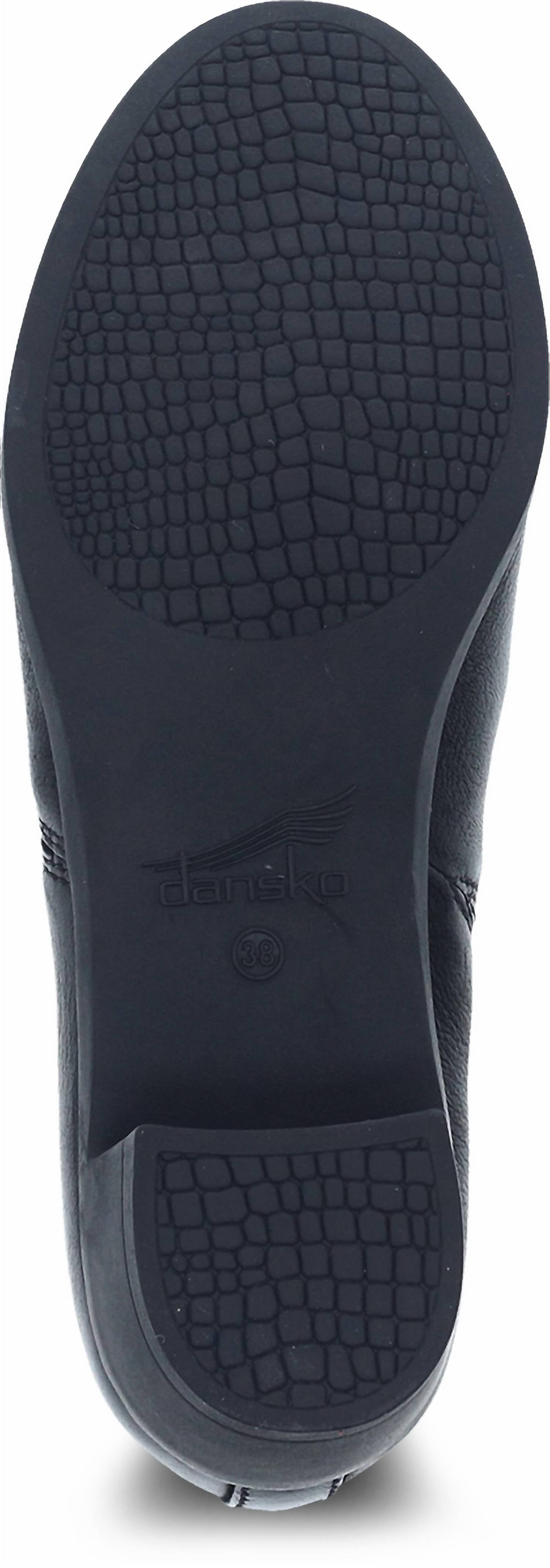 Elevate your office ensemble with the Camdyn Heeled Comfort Shoes by Dansko, perfect for women who appreciate style and comfort. These shoes are crafted with black burnished nubuck leather uppers and feature a round toe design, complemented by a low block heel ranging from 1 1/4" to 2". The interior boasts chrome-free leather and 100% recycled textile linings enhanced with Aegis® Microbe Shield odor control. Enjoy the support of a removable EVA footbed with memory foam and Dansko Natural Arch® technology, all secured by a durable rubber outsole recognized with the APMA Seal of Acceptance.