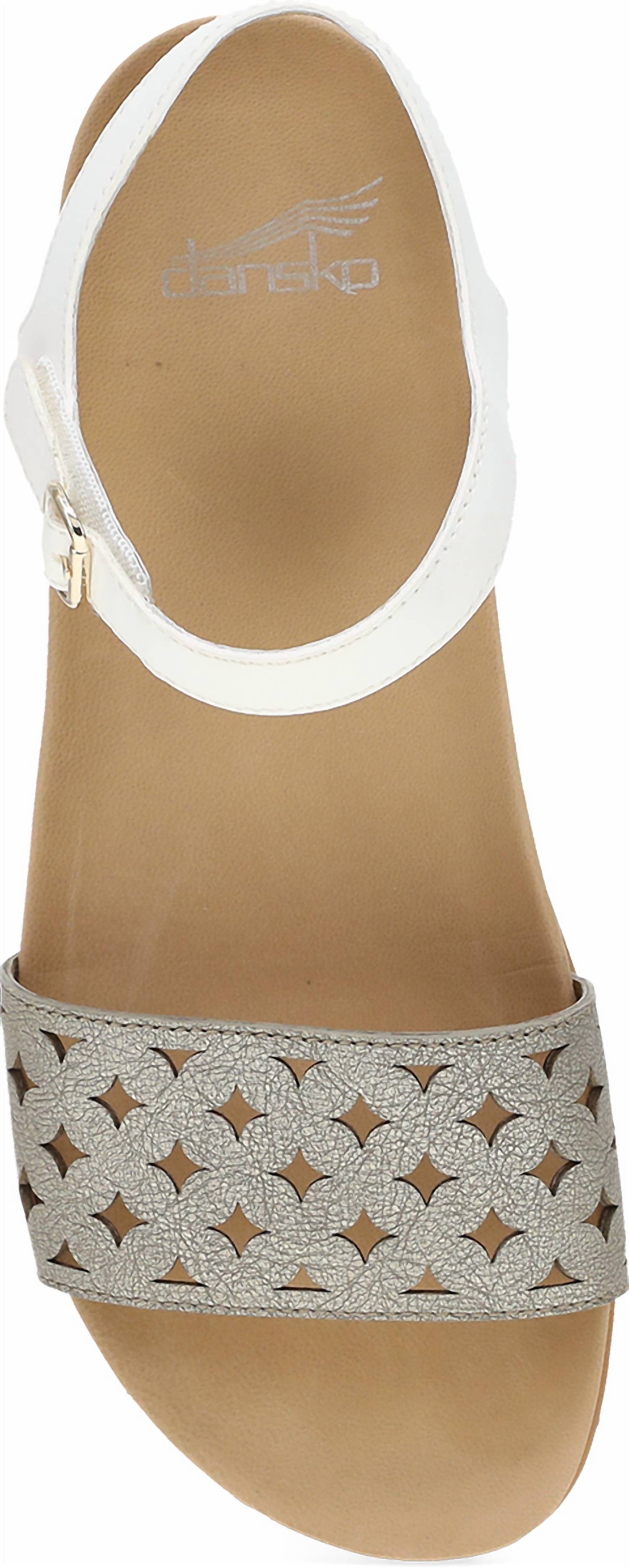 This sandal will take you from brunch to dinner and everything in between. Step into stylish comfort with the Jodie Leather Sandal by Dansko, a perfect blend of sophistication and support. Featuring hand-selected leather in a chic Platino/white shade, these sandals are designed with a trendy cutout detail for a boho chic touch. Ideal for summer vacations or celebrating Mother's Day, they boast a low 1-inch platform heel for effortless wear. Make a bold fashion statement while enjoying superior comfort and durability.