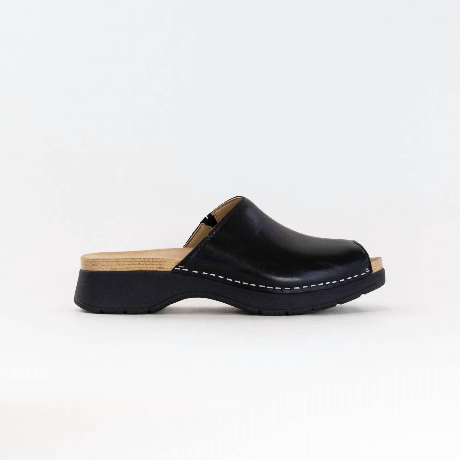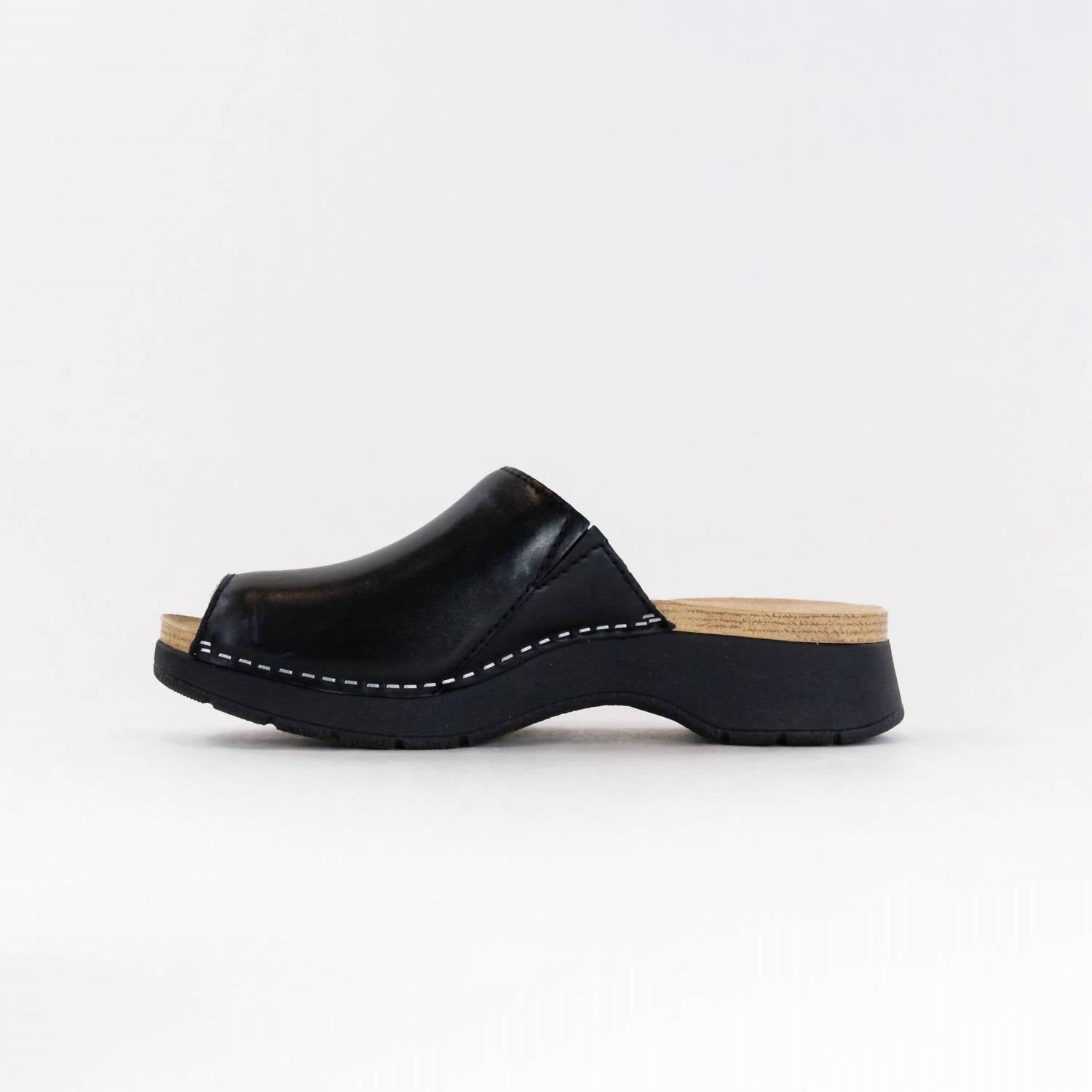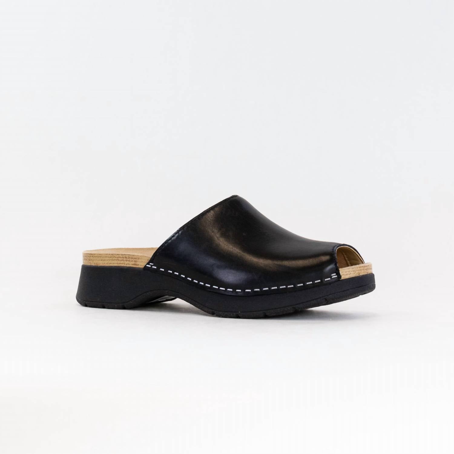 Introducing the Women's Ravyn Nappa Sandals by Dansko, a sleek addition to your footwear collection in classic black. These peep toe sandals feature high-quality leather uppers with a soft lining for all-day comfort. The sandals boast a chrome-free suede socklining and a cushioned energy-return PU footbed. With a lightweight, contoured BPU midsole and a flexible TR rubber outsole, these minimalistic sandals are made for effortless style and comfort during dinner parties or spring outings.