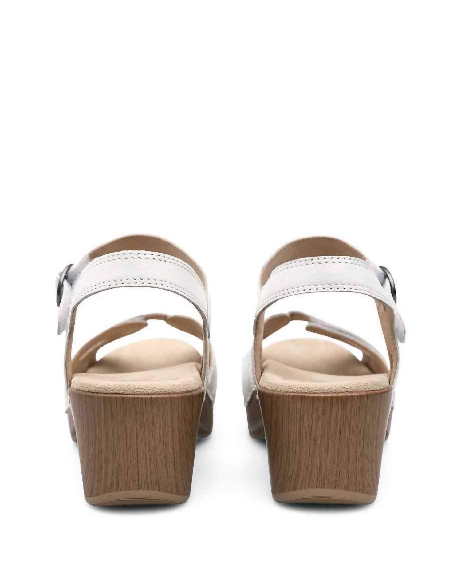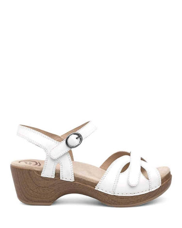 Step into style with the Women's Season Sandal by Dansko, featuring elegant leather uppers in classic white. This sandal boasts a mid-height 2.25-inch platform heel, offering both stability and shock absorption thanks to its rubber outsole with tread. Designed for unparalleled comfort, it includes a Dri-Lex® socklining for moisture management and a shock-absorbing foam midsole, ensuring all-day ease. Perfect for summer dinner parties, its lightweight construction makes it a minimalist and chic choice for Thanksgiving and beyond.