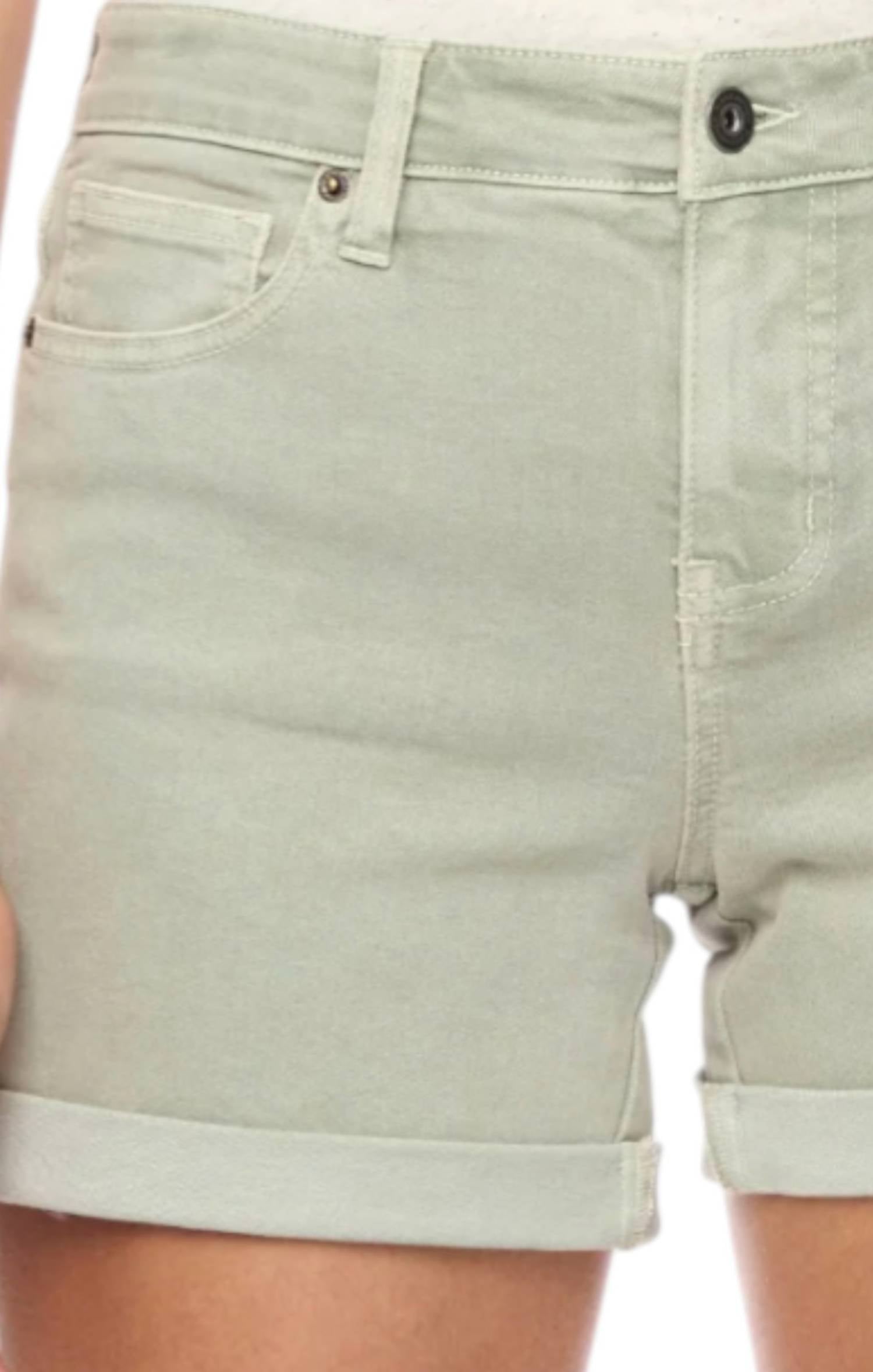 Elevate your summer wardrobe with the Shelby Cuffed Denim Short by Flag & Anthem, perfect in chic Sage and boasting a stylish high-rise design with a 4.5" inseam. Engineered from cotton and spandex, they deliver ultimate comfort and flexible durability. Closure is handled by a classic button fly/zipper, while the 5-pocket styling and cuffed hem add to its practical appeal. Easy to care for, simply machine wash and tumble dry, making these shorts an ideal choice for travel and streetwear looks.