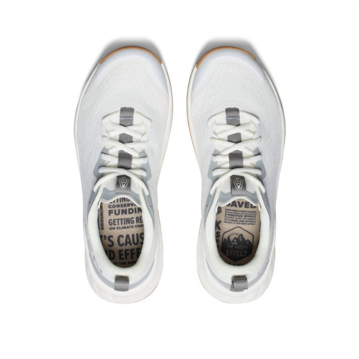 Explore the great outdoors with the Women's Versacore Hiking Shoes by Keen, crafted for style and performance in a crisp white hue. These sneakers feature a lightweight performance mesh upper and breathable mesh lining, ensuring comfort and breathability in any summer hiking adventure. Designed with a removable PU insole and high-rebound EVA midsole, these shoes provide enduring comfort, while the KEEN.ALL-TERRAIN rubber outsole and multi-directional lug pattern offer superior traction. The KEEN Original Fit allows for ample forefoot space, ensuring a natural and comfortable stride, with built-in anti-odor properties for freshness on every adventure.