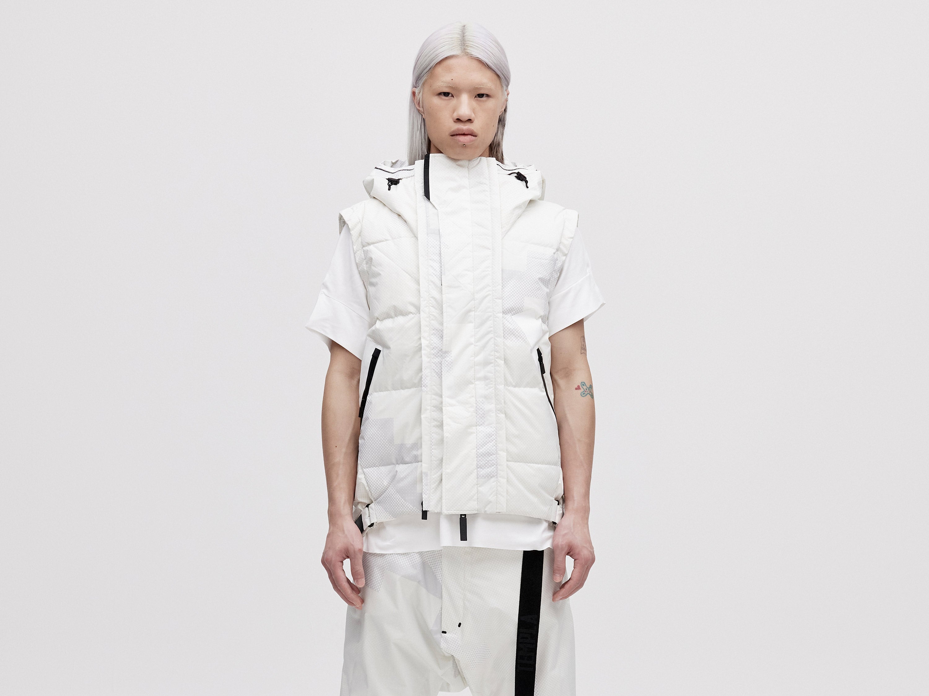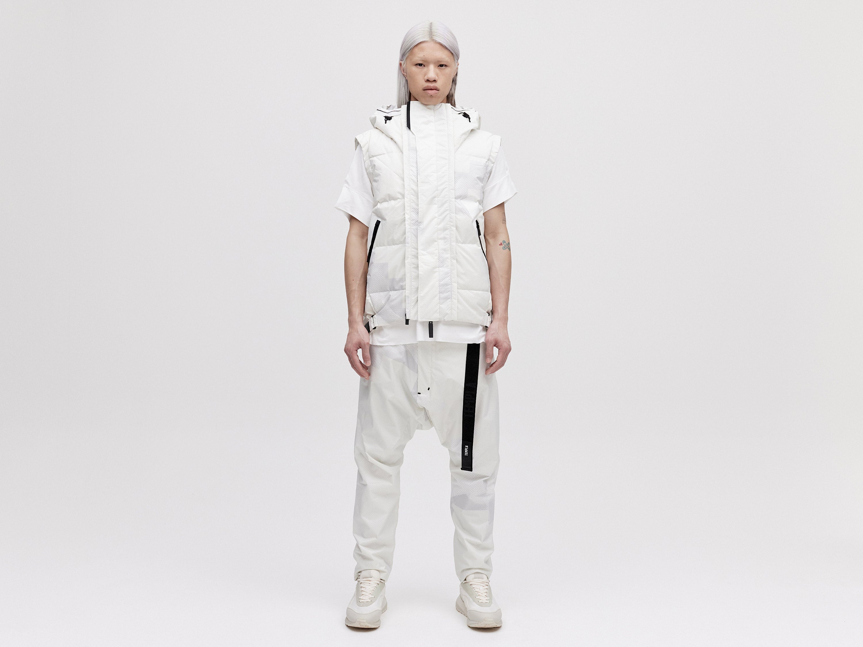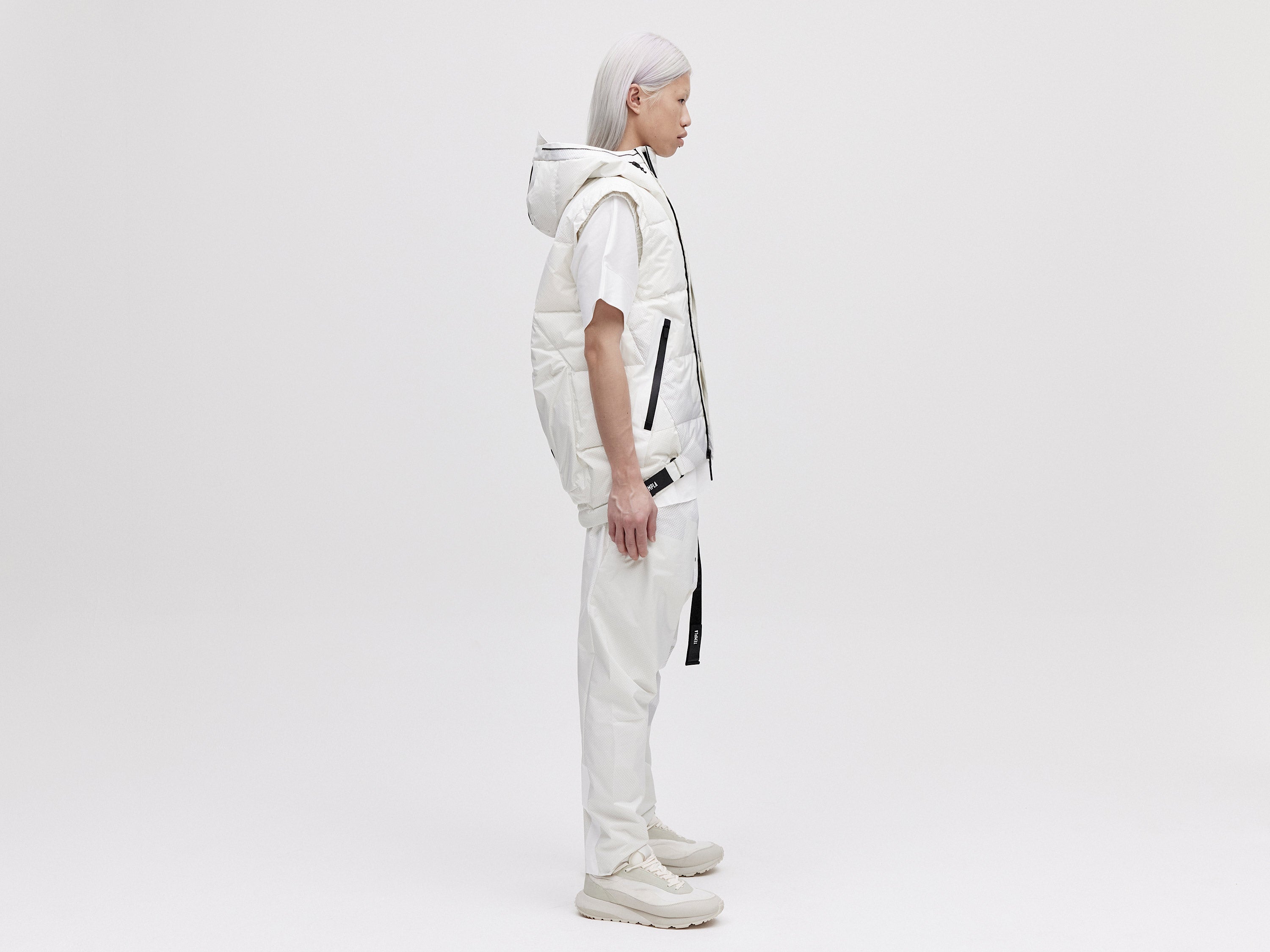 Our Modular Down Vest is a must-have trans-seasonal staple. It features hidden zips on the front placket which allows it to fully integrate with our Layered 2L Shell Jacket for added weather protection. If worn together and conditions suddenly change, simply use the large pocket detail on the back of the vest to stow away the packable shell jacket.