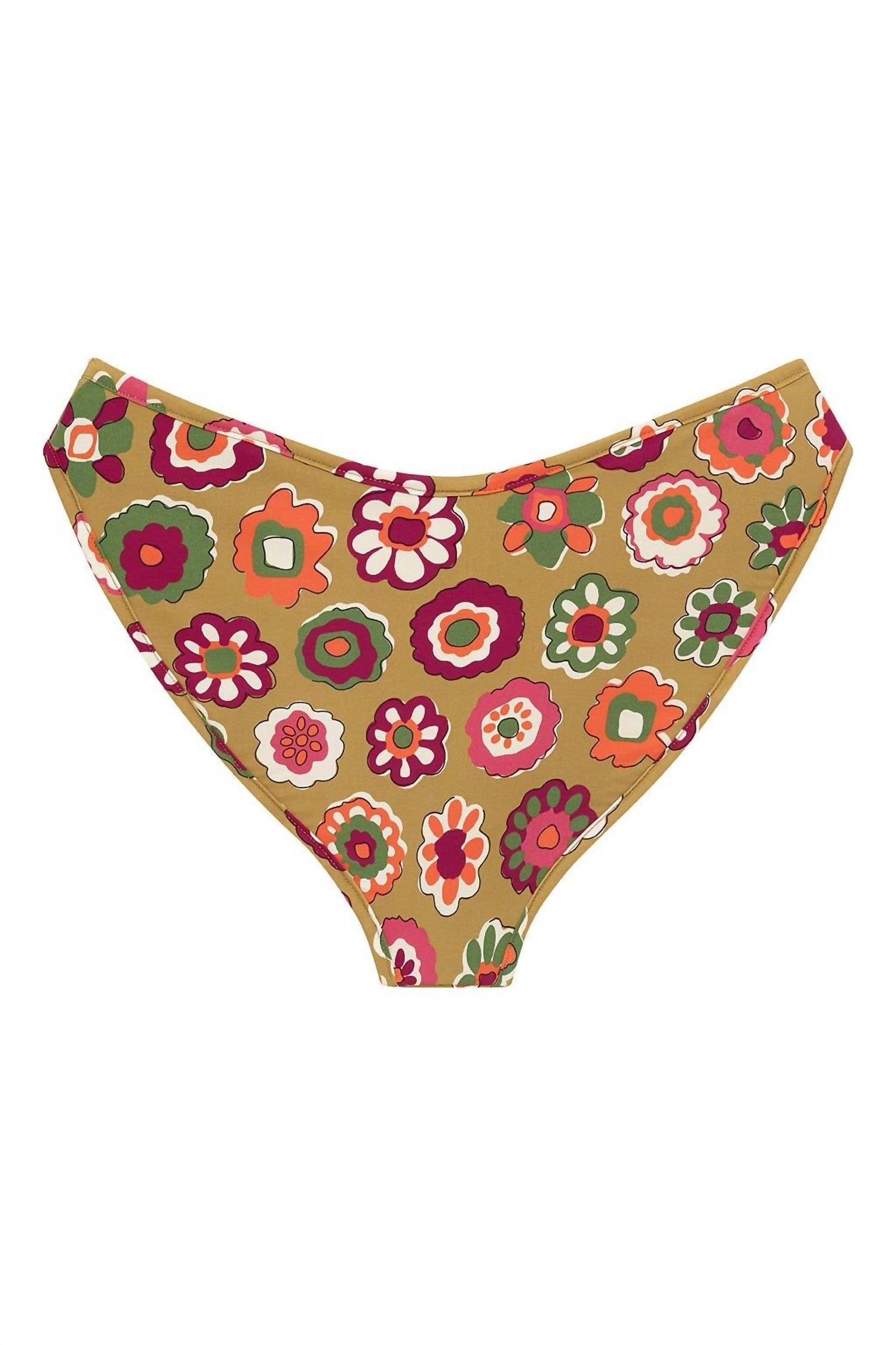 Introducing the Added Coverage Lulu Bikini Bottom by Montce, a retro-style silhouette designed for a flattering fit on all figures. Featuring a mid-rise and high-cut style that elongates the legs, these bottoms offer full coverage and are crafted from 75% Nylon and 25% Spandex. The Mazzy Floral pattern adds a boho chic touch, with fabric imported from Italy and providing UV protection with UPF 50+. Perfect for beach days, this swim bottom is machine washable and should be line dried.