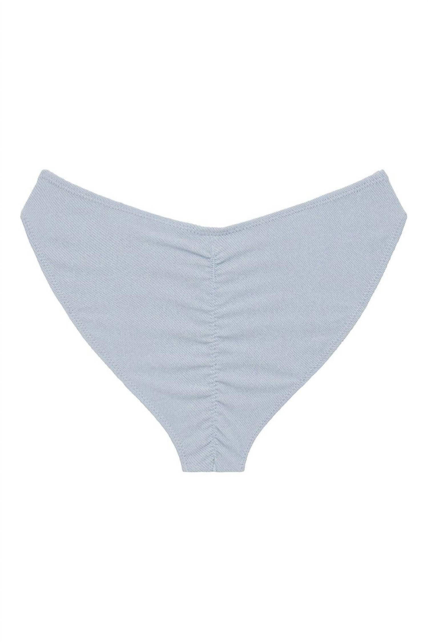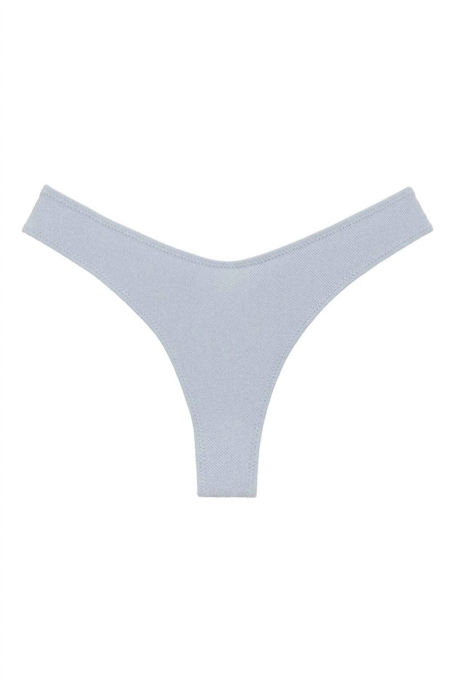 Elevate your swimwear collection with the Added Coverage Lulu Zig-zag Stitch Bikini Bottom by Montce, crafted for a flattering, retro-inspired look. Designed to be about 3 inches wider in the back, this medium low-rise bikini bottom offers full cheeky coverage and a high cut to elongate your legs. Made from a light denim fabric with moderate stretch, it boasts a composition of 60% Nylon, 30% Polyester, and 10% Spandex, with Italian-imported OEKO-TEX certified fabric. Care for your bikini by hand washing to maintain its minimalist style, perfect for a summer beach day.