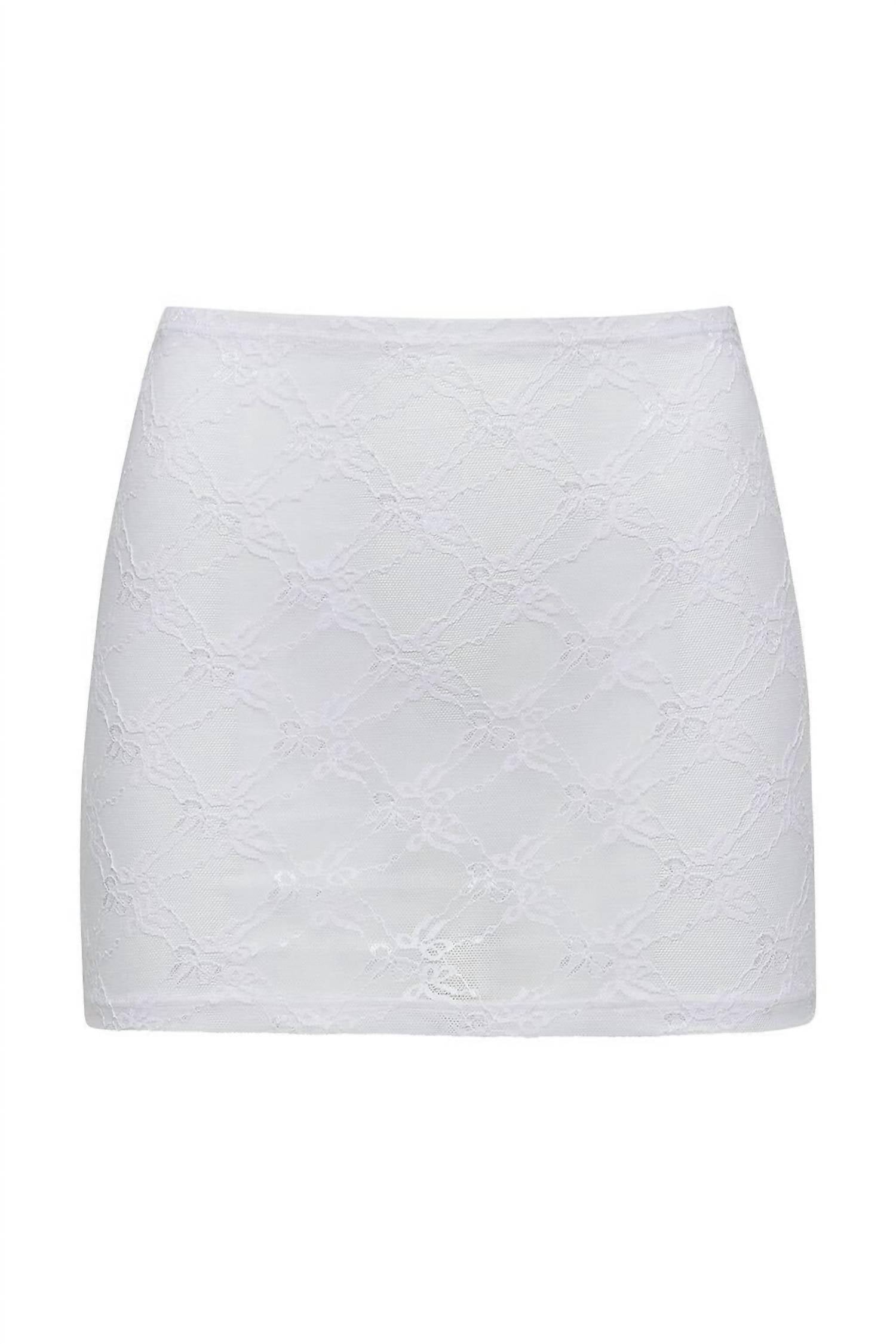You're going to want to pack this for your next vacation! The Bows Lace Micro Skirt by Montce features a versatile design perfect for a stylish beach day attire. This textured, knitted lace skirt in classic white offers body contouring and can be worn high, low, or mid-rise. It is crafted from a polyester, spandex, and organic cotton blend that is OEKO-TEX certified, with fabric imported from Turkey. For care, simply hand wash to maintain its boho chic look, ensuring it's ready for your next summer adventure.