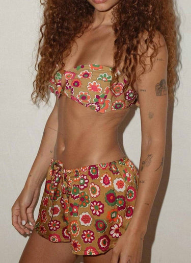 Ideal for relaxed poolside moments, this adorable swimsuit effortlessly transitions into the perfect sunset dinner outfit when paired with a flowing skirt. Elevate your summer wardrobe with the Silk Low-rise Drawstring Swim Short by Montce, featured in a charming Mazzy Floral print. Designed for versatile beach-to-dinner transitions, these shorts come with an adjustable drawstring waist ensuring a perfect fit. Crafted from a luxurious blend of 75% silk and 25% cotton with OEKO-TEX certification, the fabric is imported from Italy and offers UV protection UPF 50+. Care instruction: Hand wash.