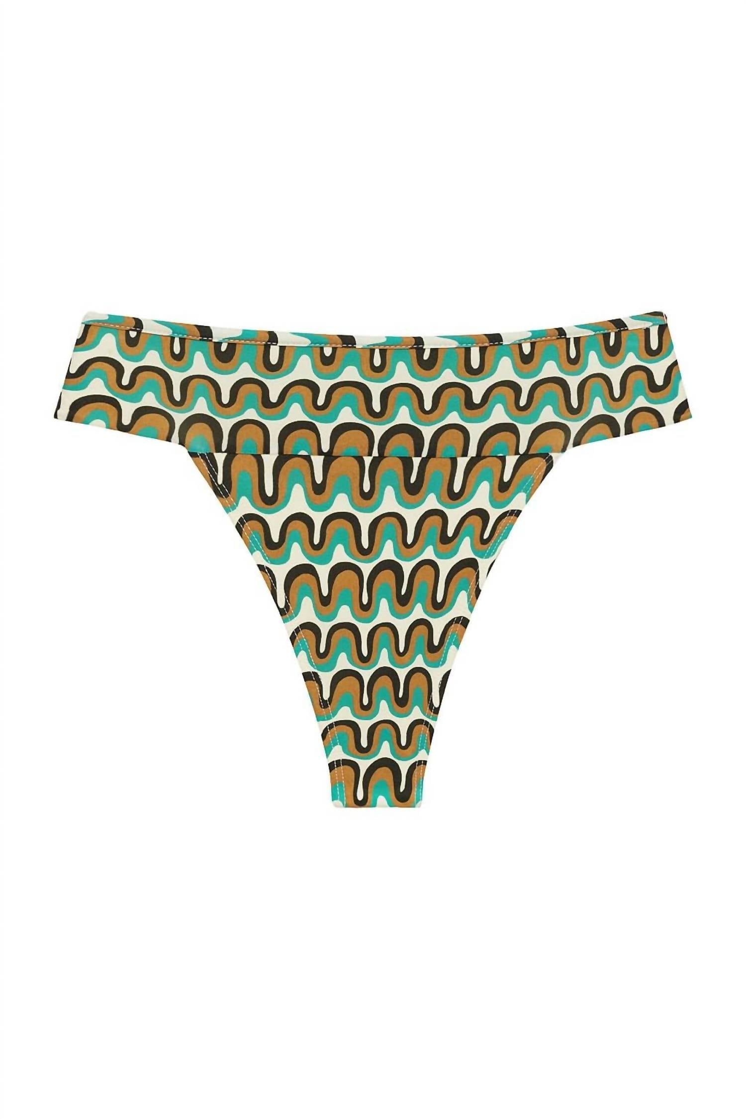 This cute and flattering swimsuit is perfect for making a splash at the pool, lounging on sun-kissed beaches, and staying stylish throughout the upcoming summer season. Elevate your beach look with the Tamarindo Bikini Bottom by Montce, offered in Groovy print for a vibrant Boho Chic vibe. Designed for a high rise fit with a high leg French cut, it beautifully elongates the legs, while the ruched back accentuates your curves. Composed of 75% Nylon and 25% Spandex, this bikini bottom ensures comfort and UV protection with UPF 50+ and is made from OEKO-TEX certified fabric imported from Italy. Perfect for a beach day, it's recommended to hand wash.