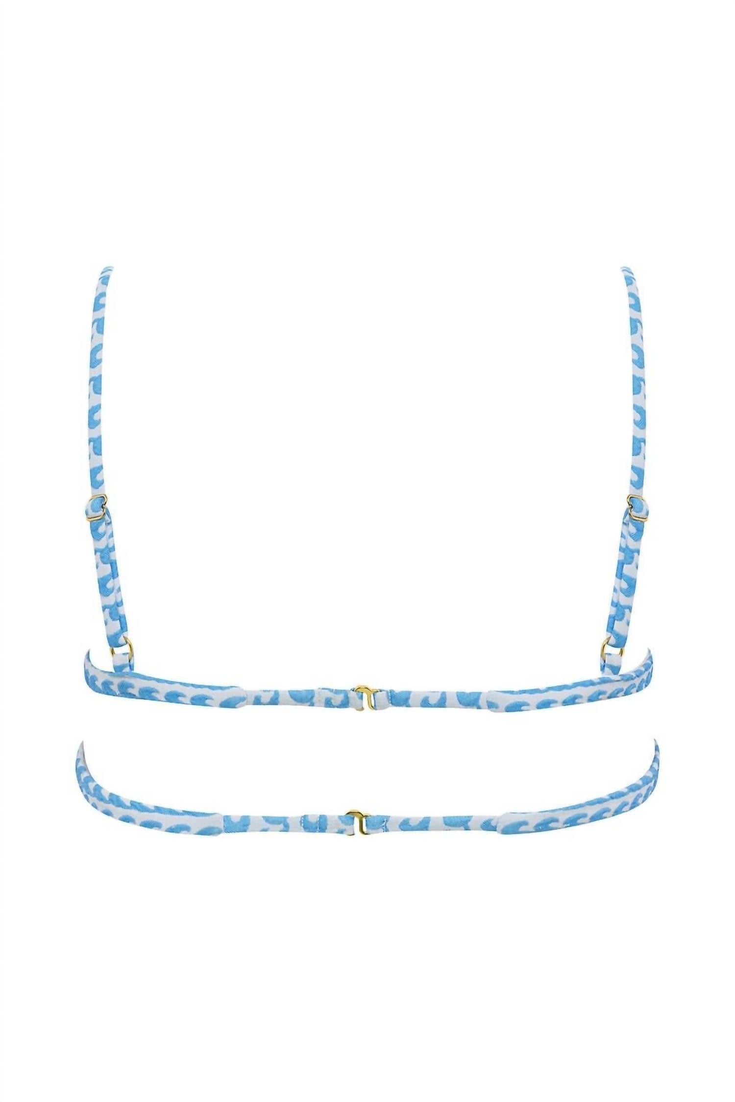 Ideal for relaxed poolside moments, this adorable swimsuit effortlessly transitions into the perfect sunset dinner outfit when paired with a flowing skirt. Elevate your beach day look with the Montce Underwire Elany Bikini Top in an eye-catching Wave Repeat pattern. This bikini top offers light support and features an underwire design with adjustable shoulder straps and a back hook closure for a customized fit. Crafted from 100% recycled plastic bottles, it is more delicate than other fabrics, so handle with care to maintain its quality. The bralette silhouette with a scoop neckline is enhanced by double back straps and gold tarnish-resistant metal hardware, adding style and support. Care instructions: Hand wash.