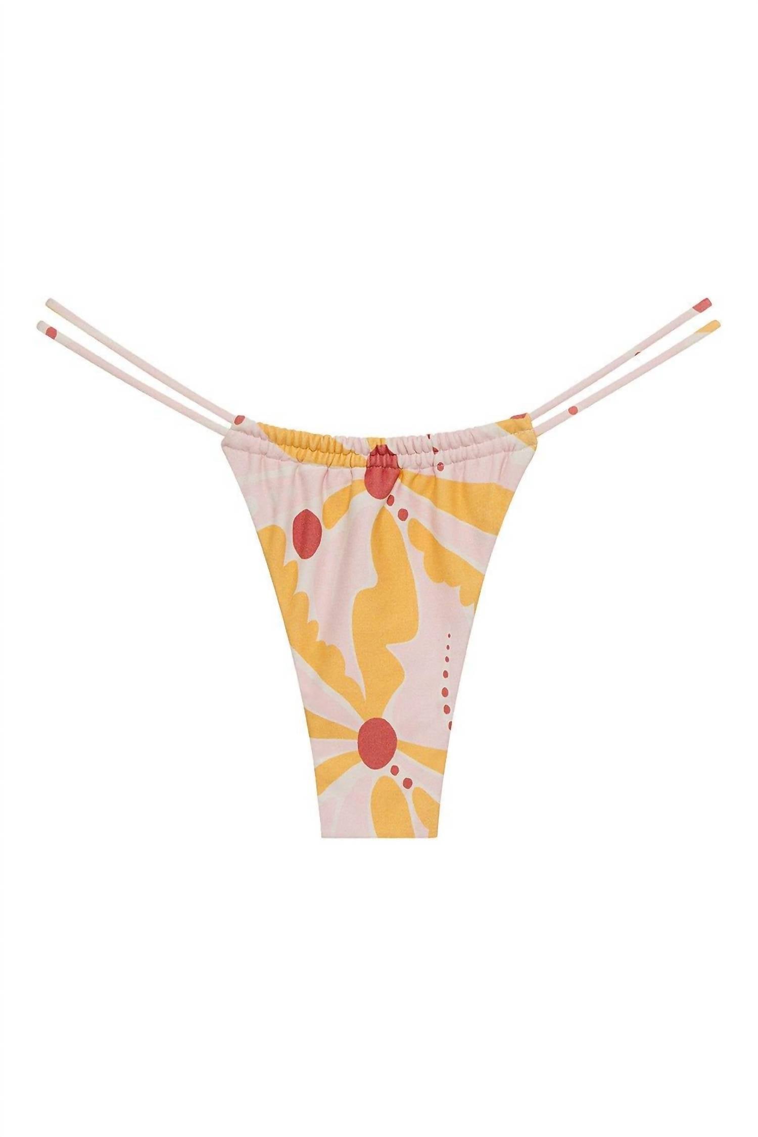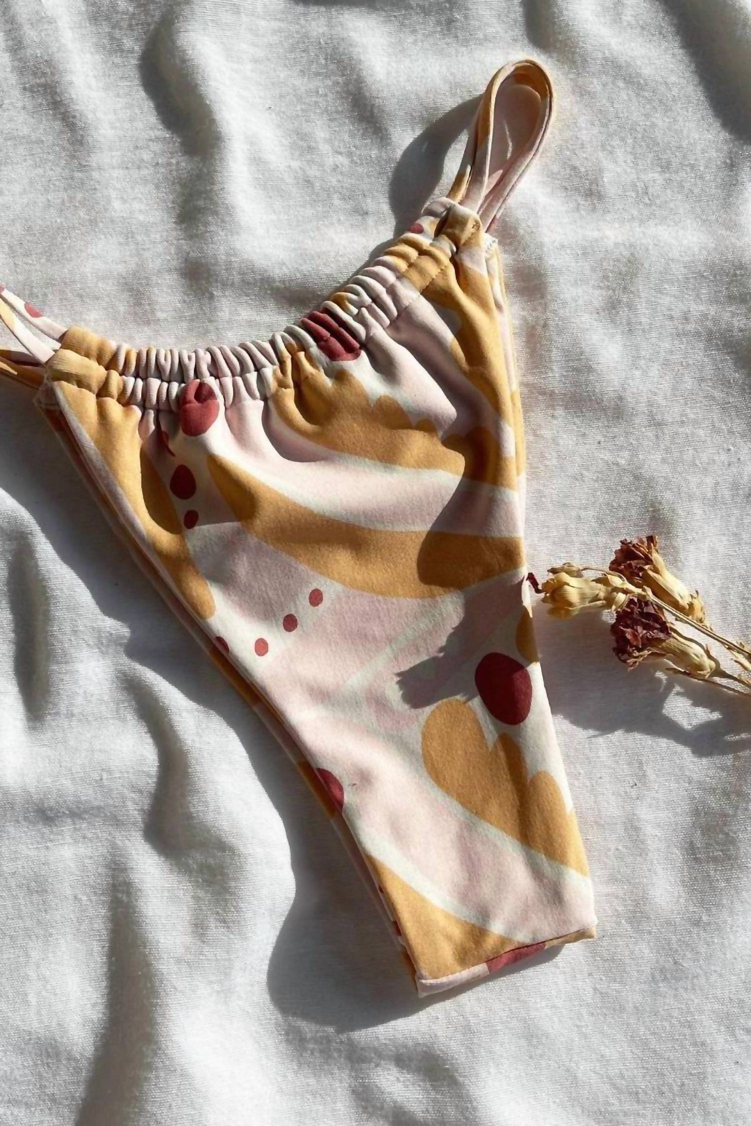 Dream of your next beach getaway in this cute little number. Pair with strappy sandals, a floppy hat, and an oversized tote to complete the perfect vacation look. Montce introduces the Brasil Bikini Bottom in Palmas, a cheeky and stylish swimwear piece perfect for your next beach day. With its minimal coverage and low rise design, the ruched back accentuates your curves beautifully. The double straps allow you to adjust for your preferred coverage, making it ideal for achieving minimal tan lines. Care: Hand wash.