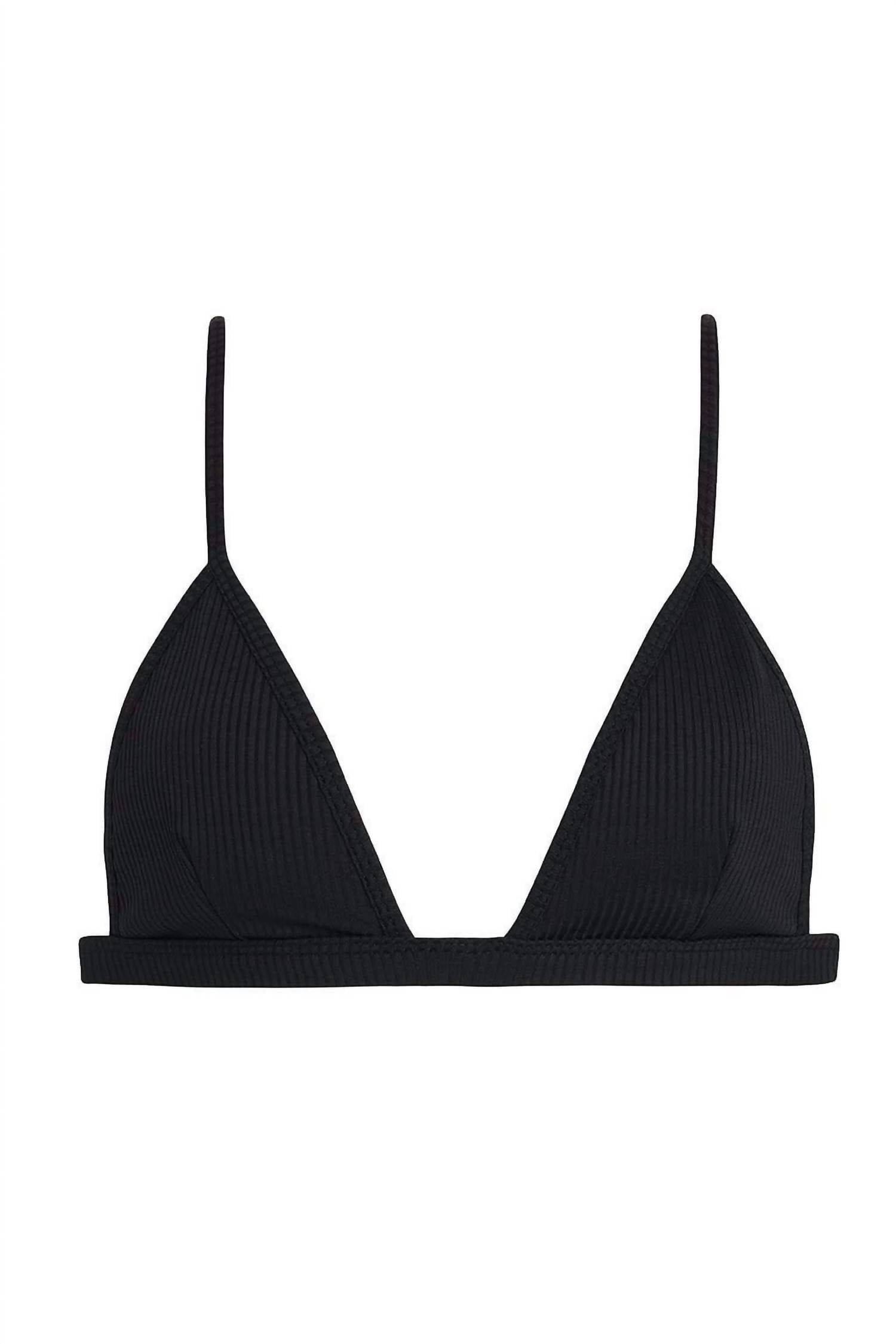 This cute and flattering swimsuit is perfect for making a splash at the pool, lounging on sun-kissed beaches, and staying stylish throughout the upcoming summer season. Embrace summer style with the Women's Rib Hunter Triangle Bikini Top by Montce, crafted for both comfort and chic elegance. This black swim top features adjustable shoulder straps and a back hook closure, ensuring a medium support fit. Made from a buttery soft ribbed material with extra stretch, it's a nylon/spandex blend imported from Brazil. To maintain its pristine condition, hand wash only.