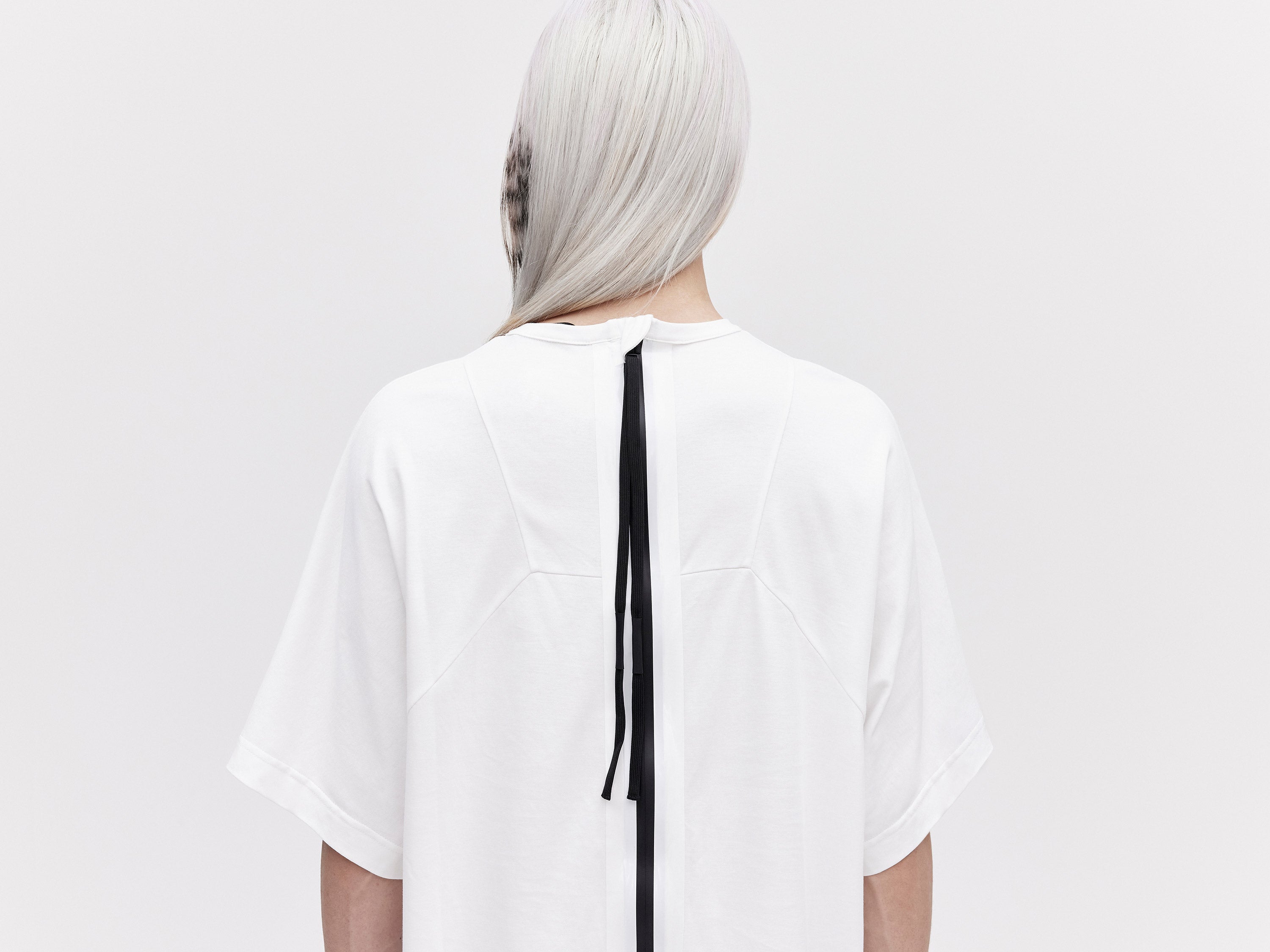 Cut from Italian organic cotton, this super soft tee places the design emphasis on the back with a full length taped zip. The epic oversized silhouette features shock cords in the hem so that you can dial in your perfect fit for endless styling options.