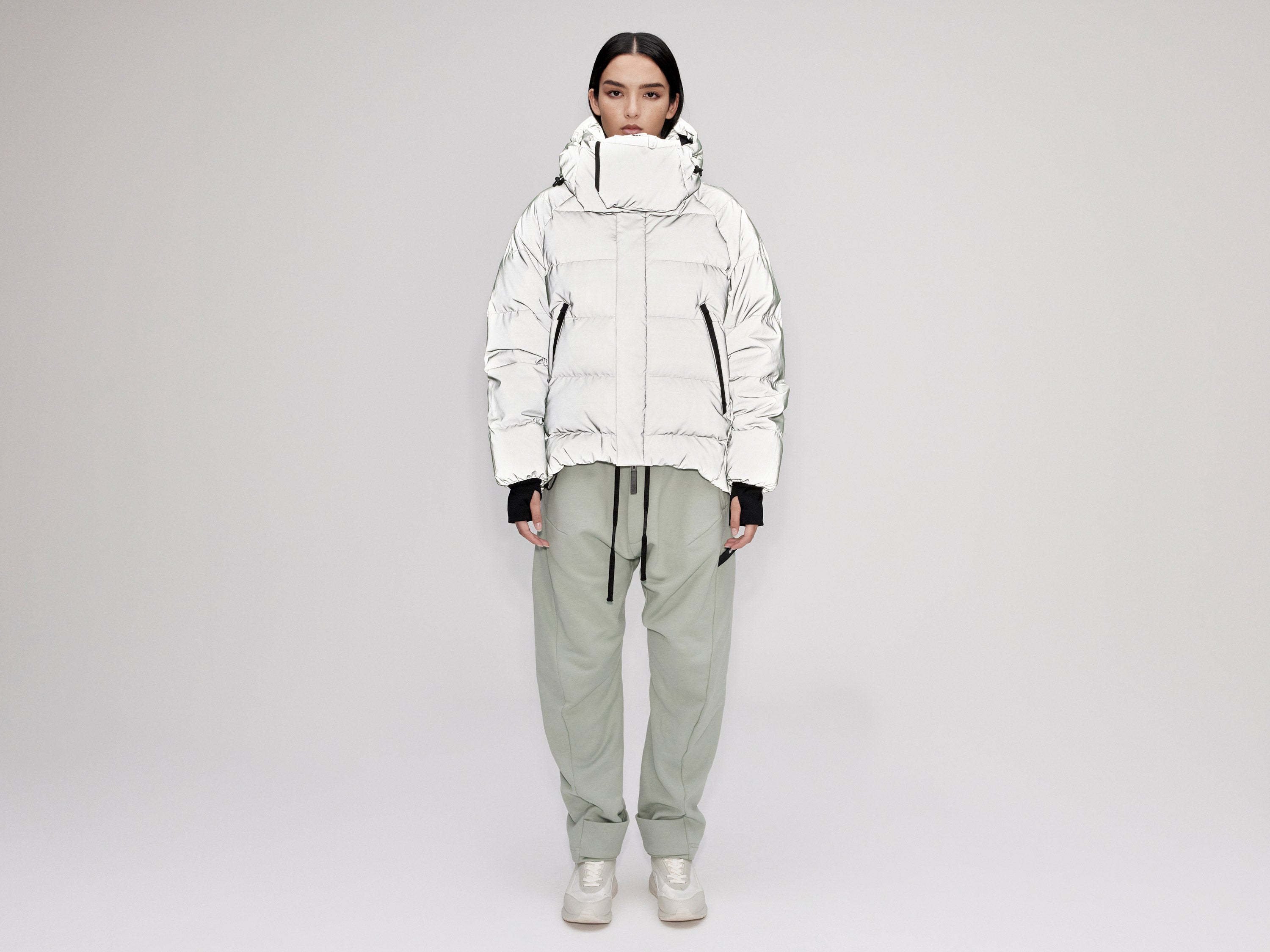 Our On/Off Hood O.S Down Jacket is made from a polyester canvas featuring a resin coating impregnated with thousands of micro-glass spheres creating a hyper-reflective surface appearance. With a classic relaxed fit, the adjustable waist straps and detachable hood with magnetic fastenings provide both practical and dynamic styling options.