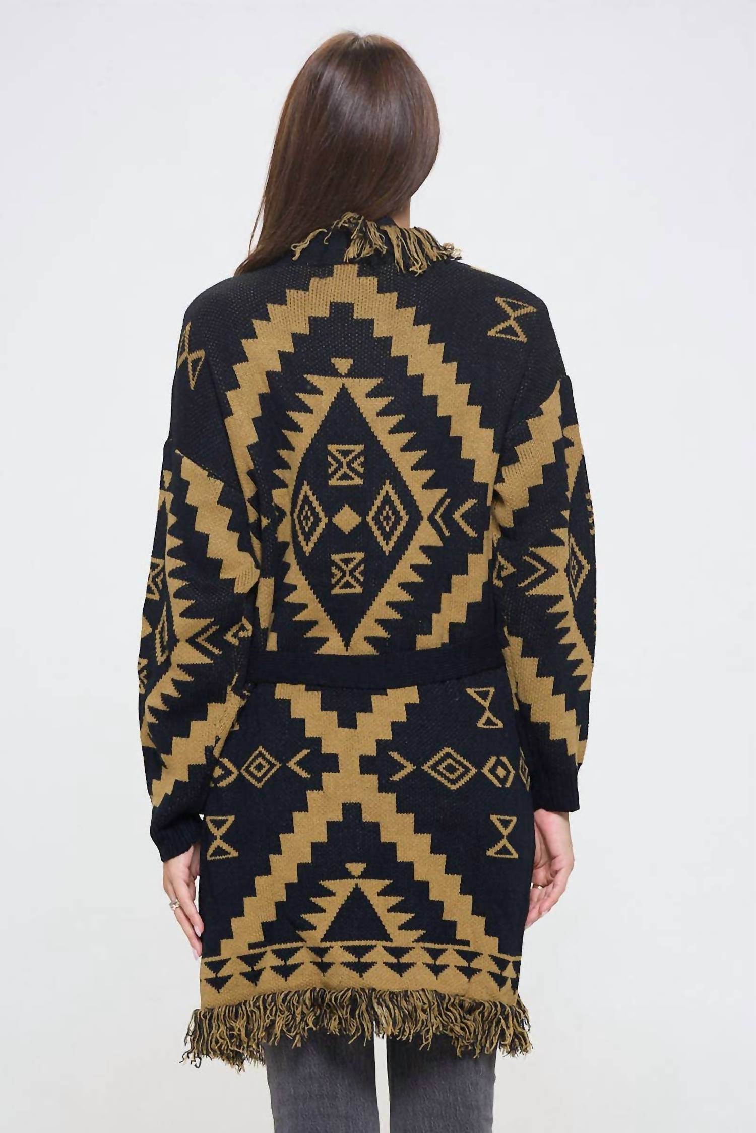 Reneec. - Tribal Print Cardigan with Fringe Detail and Tie